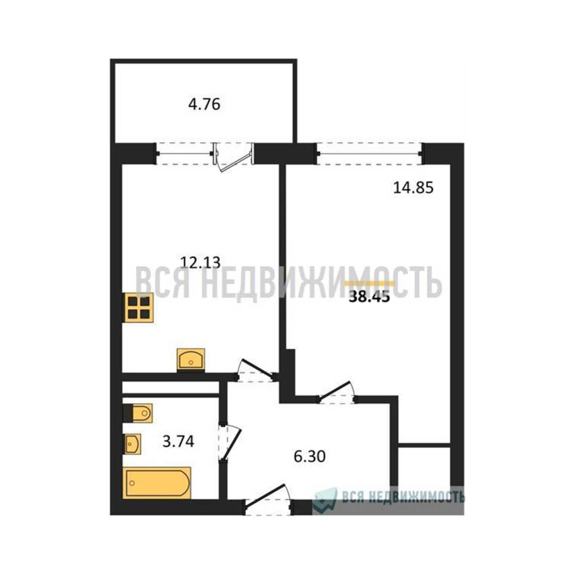 Строительная площадь38.45 м²