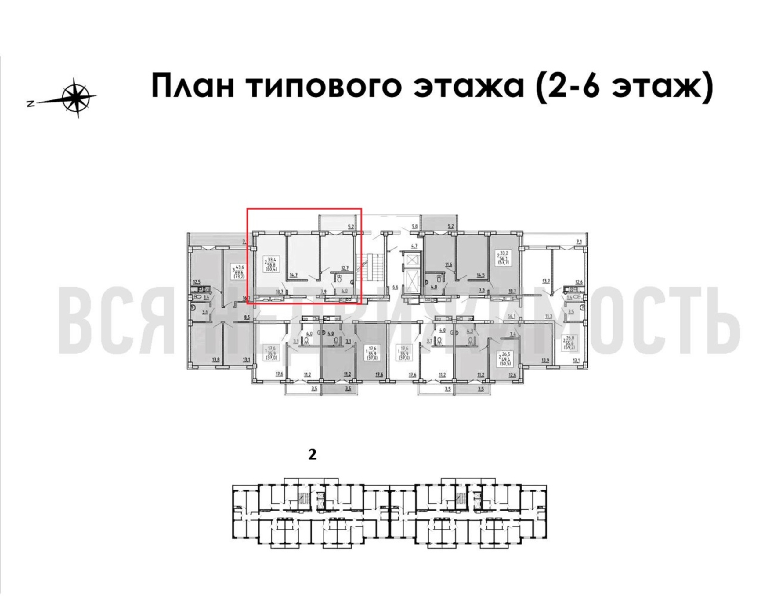 2-комнатная квартира, 60.40 м² 4/15 этаж ID объекта 100087364
