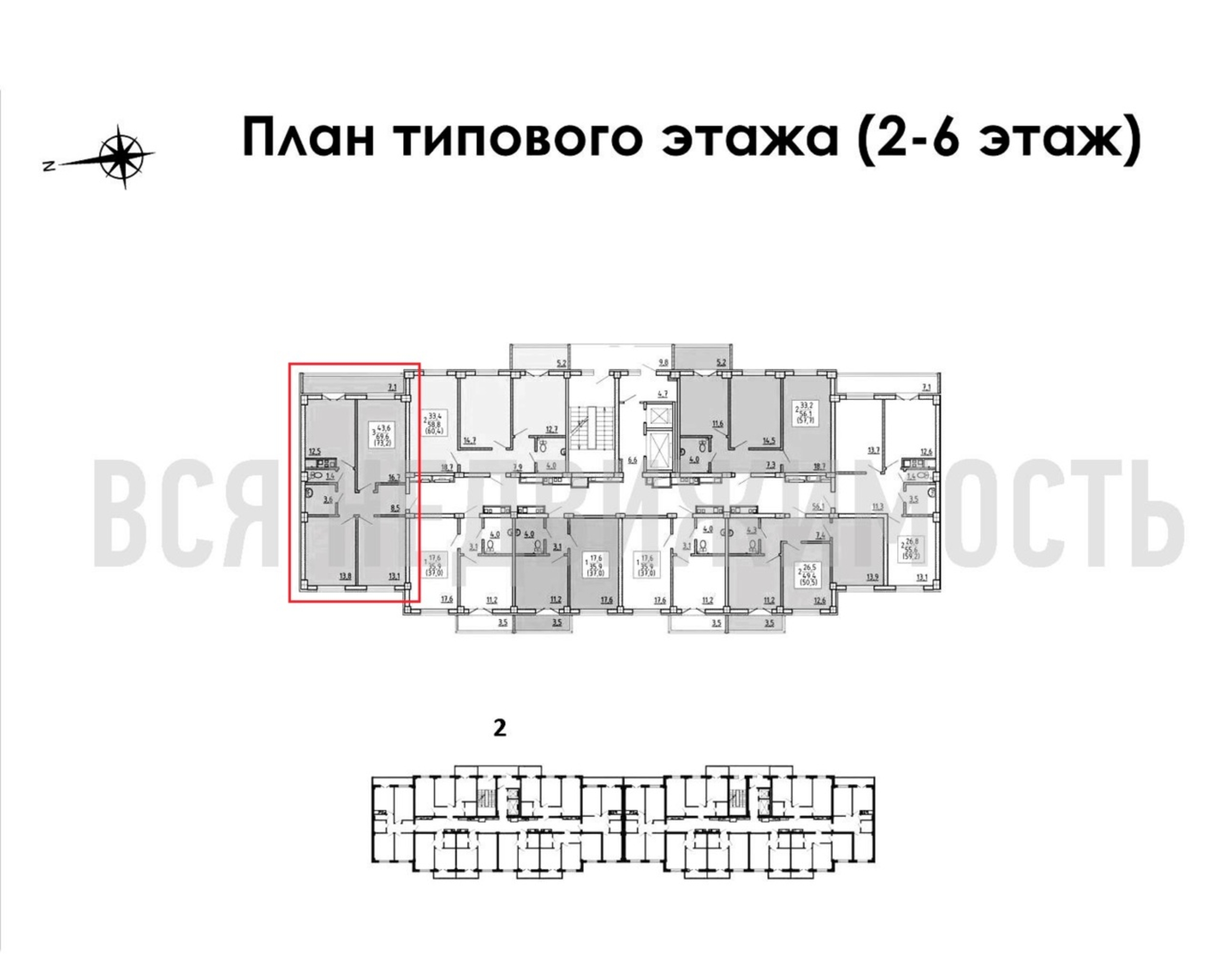 3-комнатная квартира, 73.20 м² 6/15 этаж ID объекта 100087379