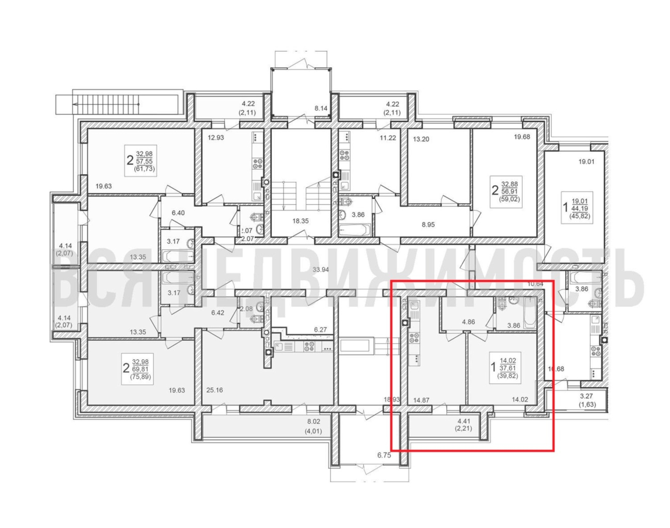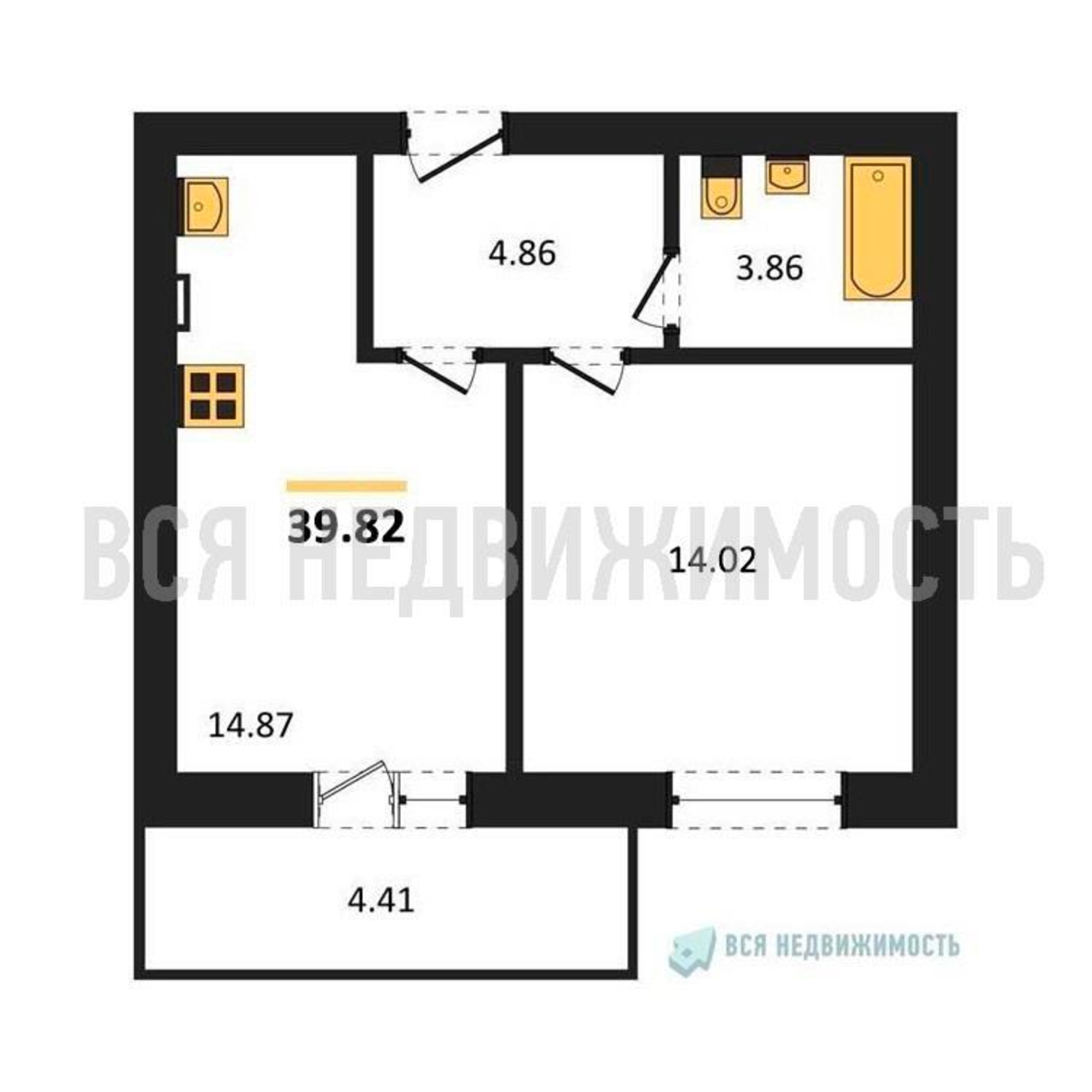 1-комнатная квартира, 39.82 м² 1/4 этаж ID объекта 100088343