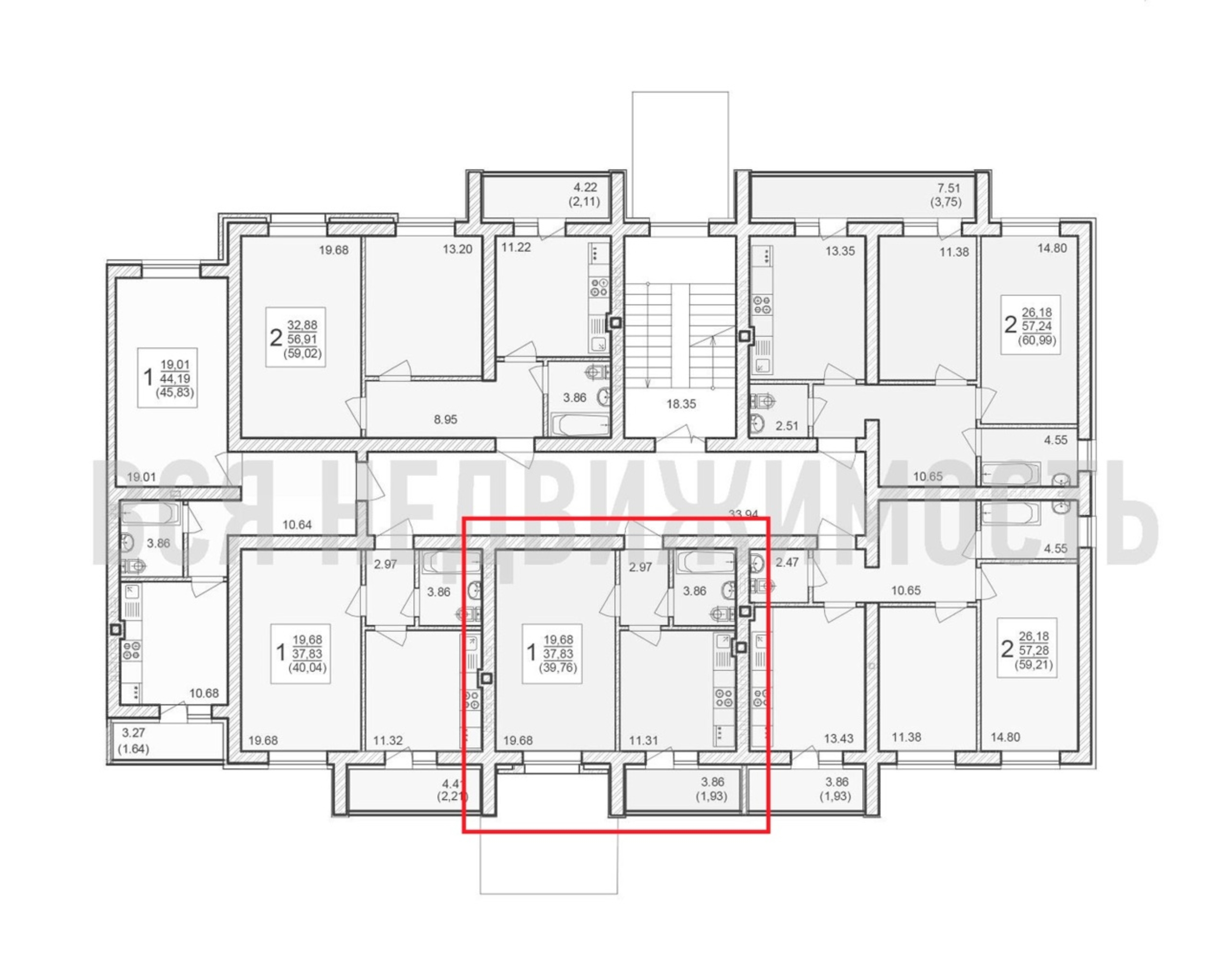 1-комнатная квартира, 39.76 м² 3/4 этаж ID объекта 100088369