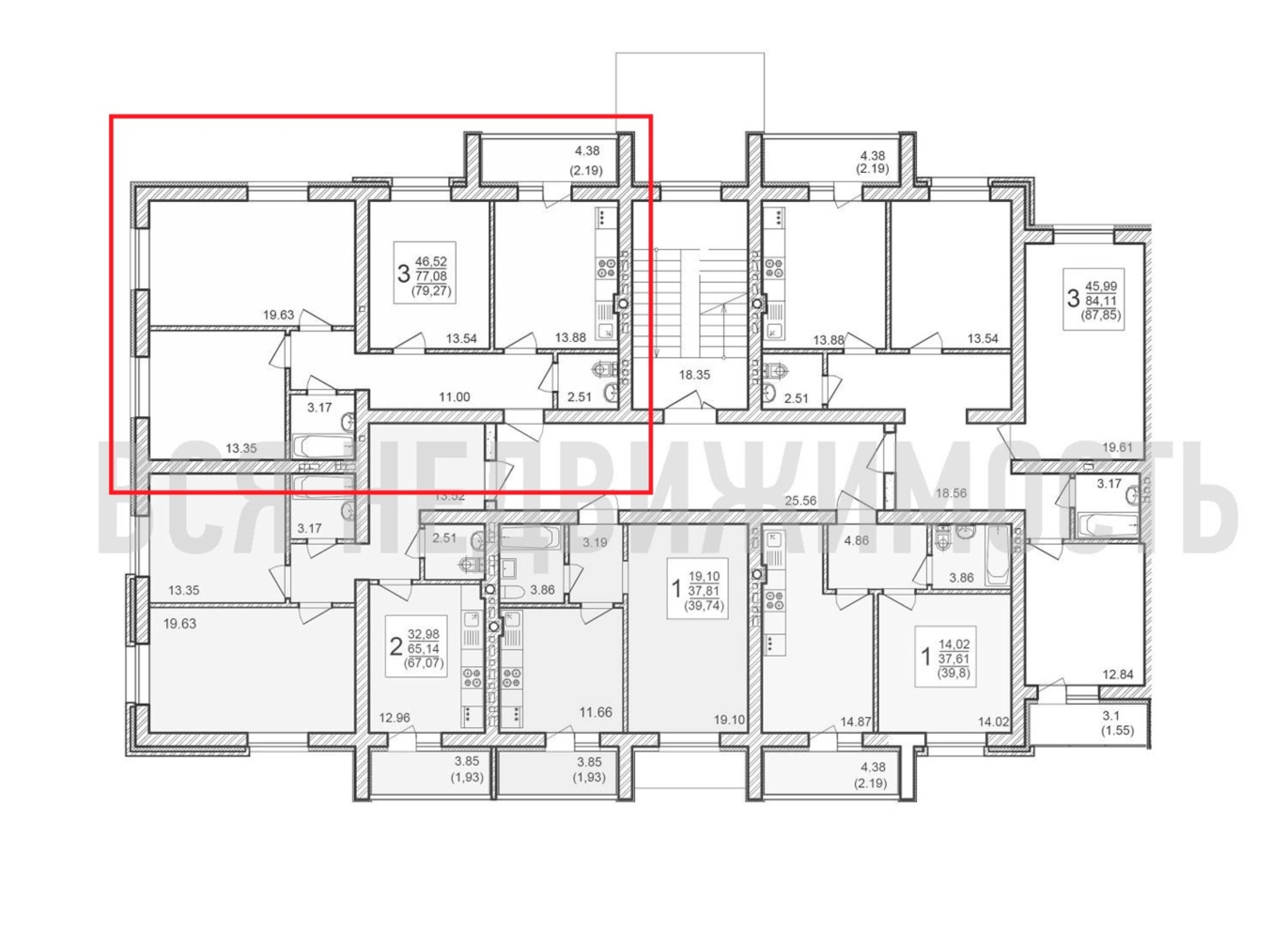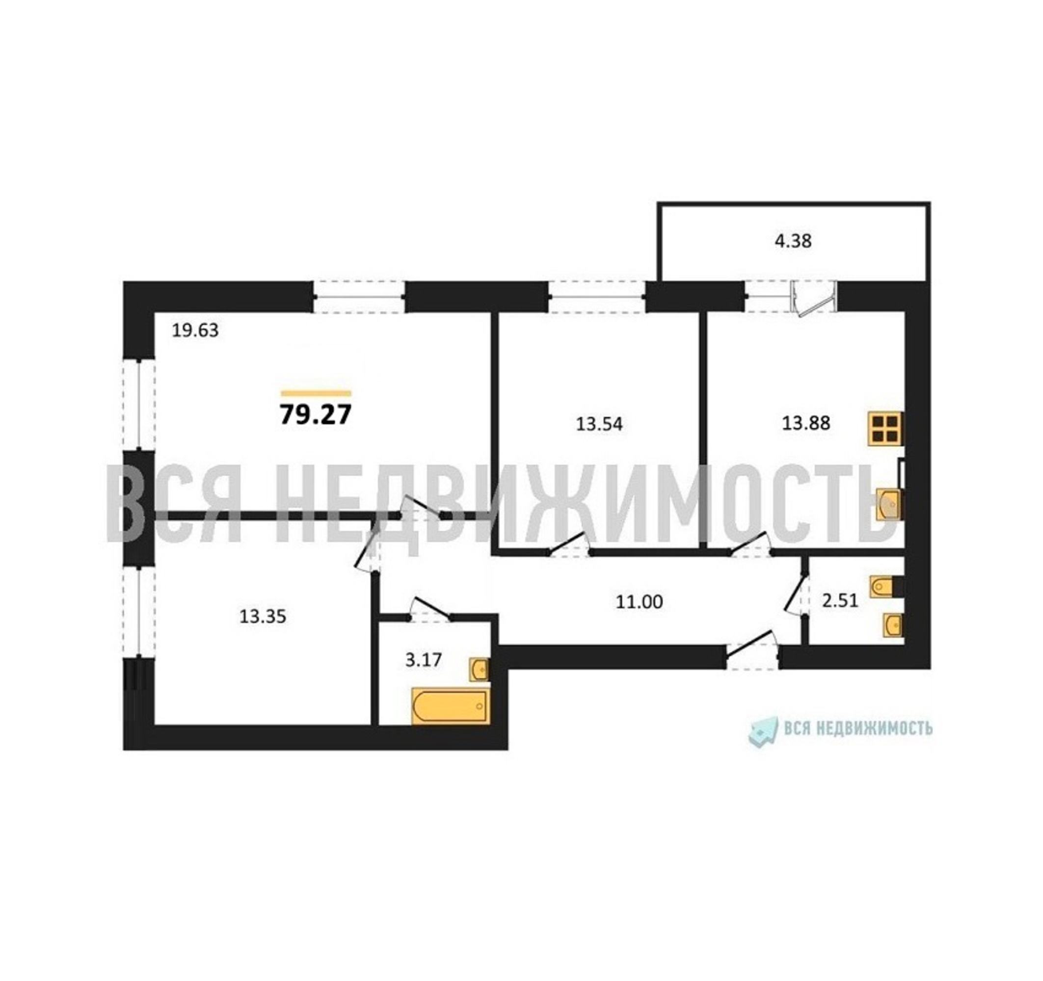 3-комнатная квартира, 79.27 м² 3/4 этаж ID объекта 100088396