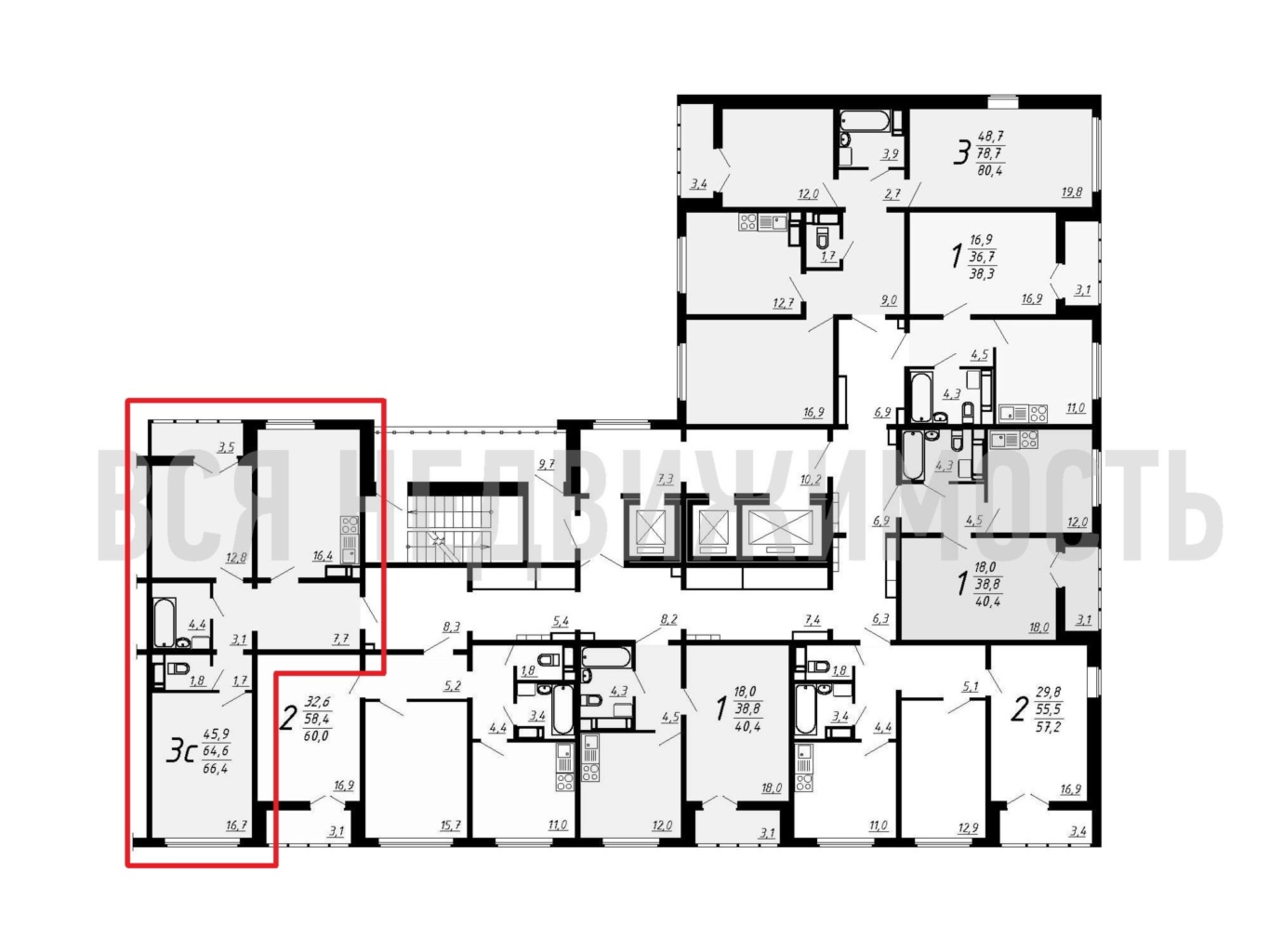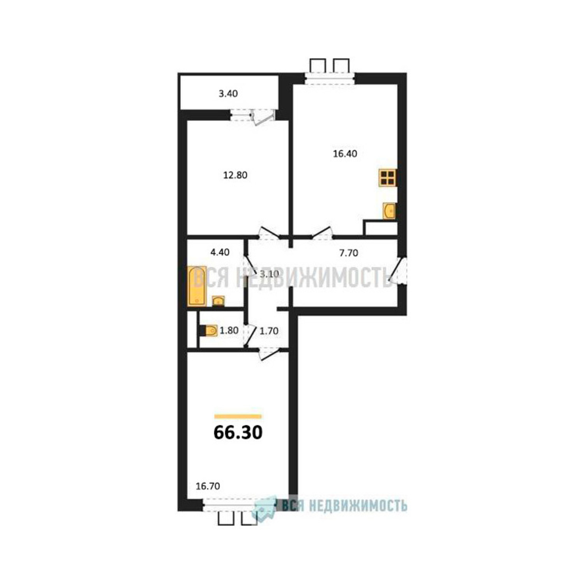 2-комнатная квартира, 66.30 м² 20/20 этаж ID объекта 100089417