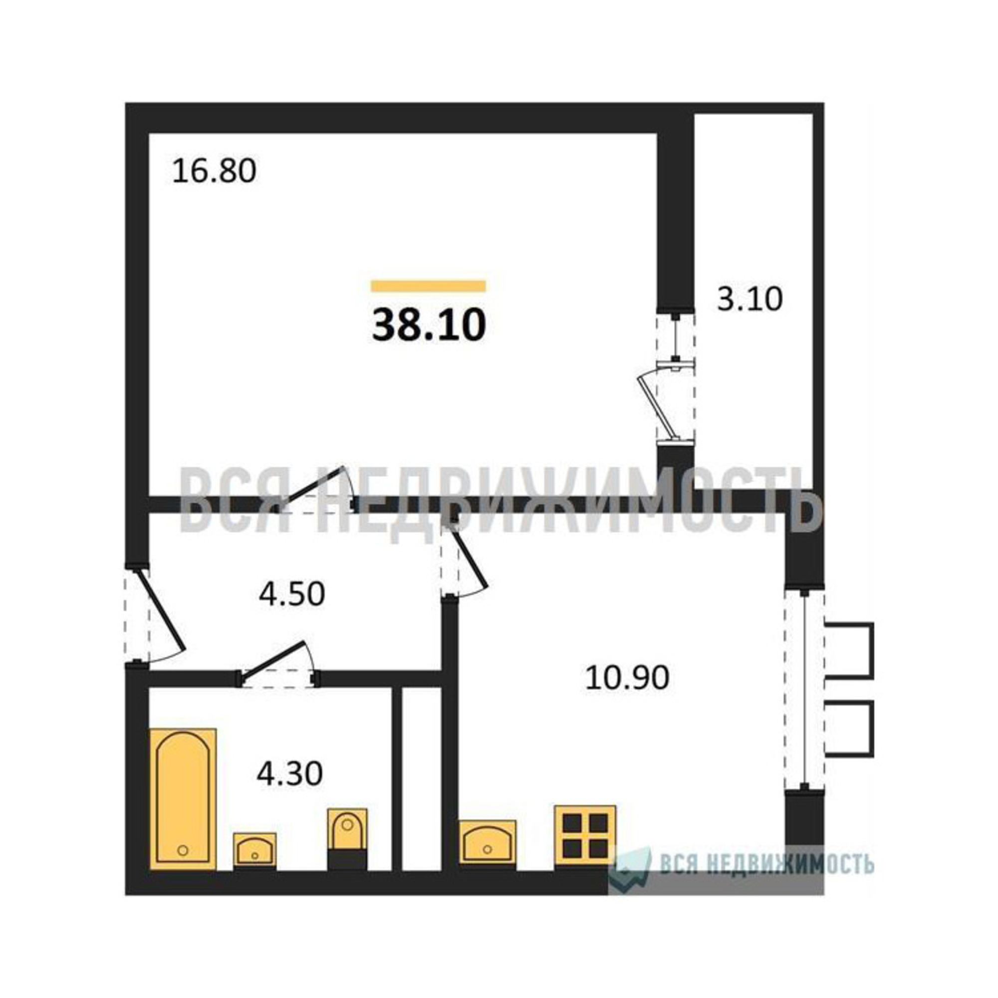 1-комнатная квартира, 38.10 м² 1/20 этаж ID объекта 100089940