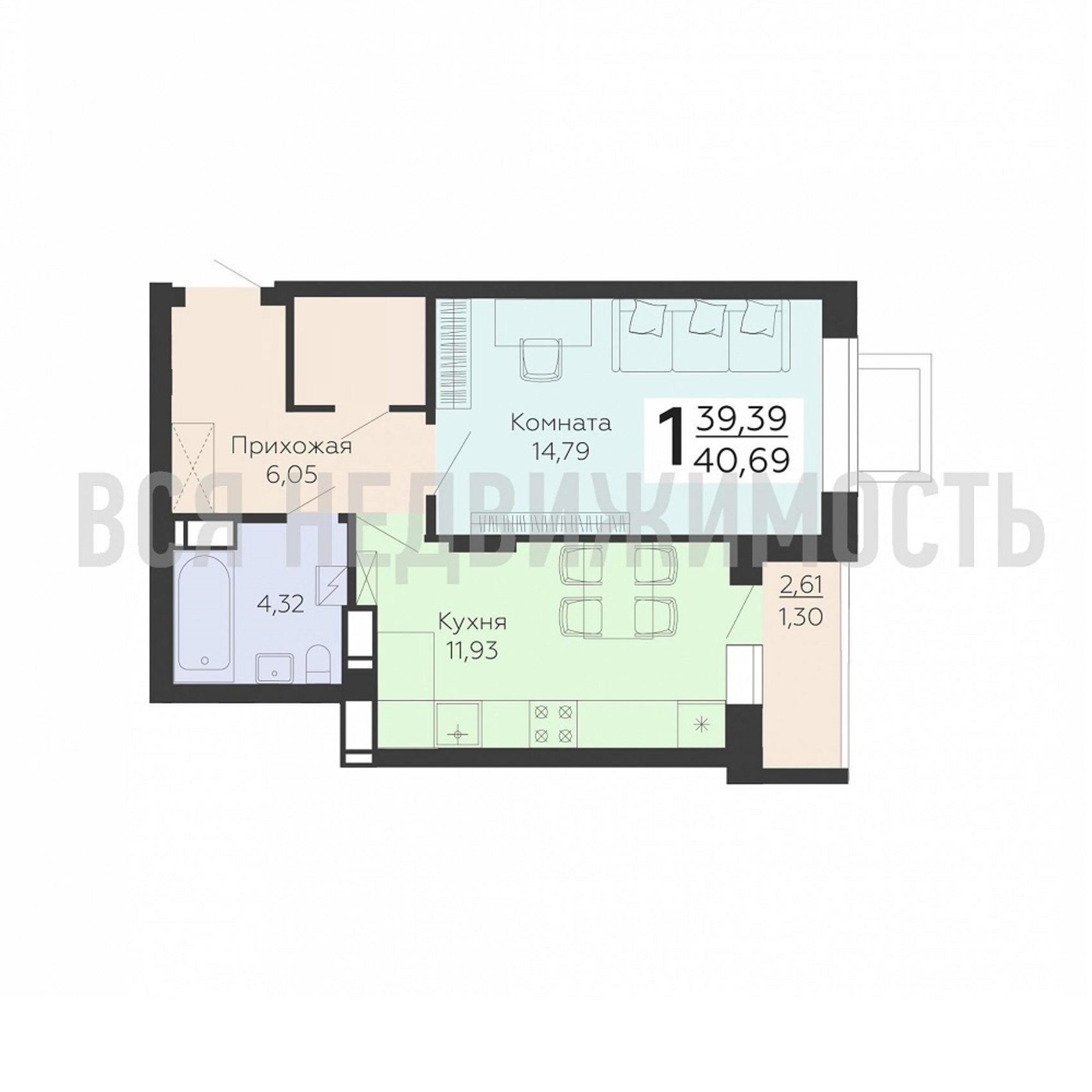 Общая площадь39.39 м²