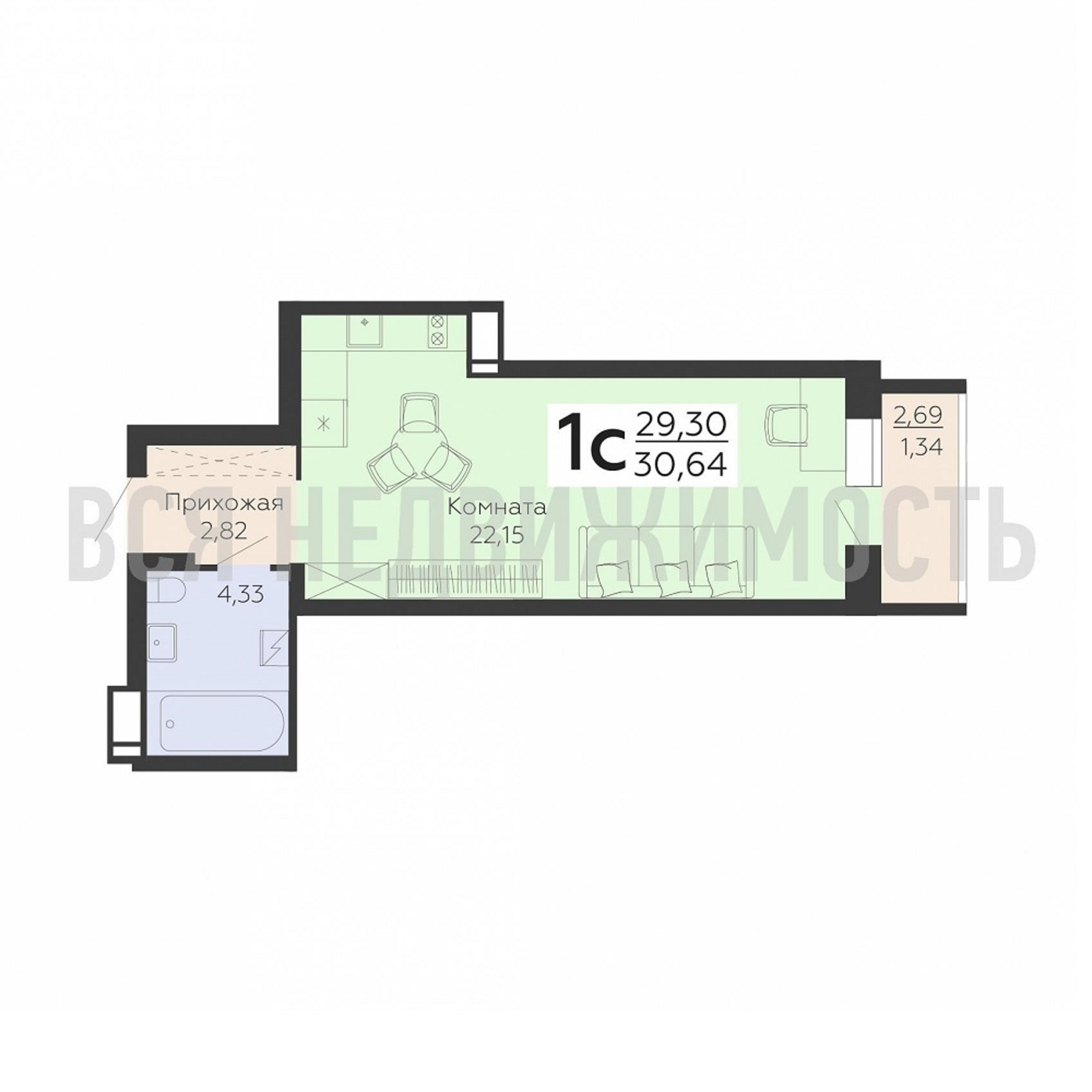 Квартиры-студии, 30.64 м² 8/19 этаж ID объекта 100090128
