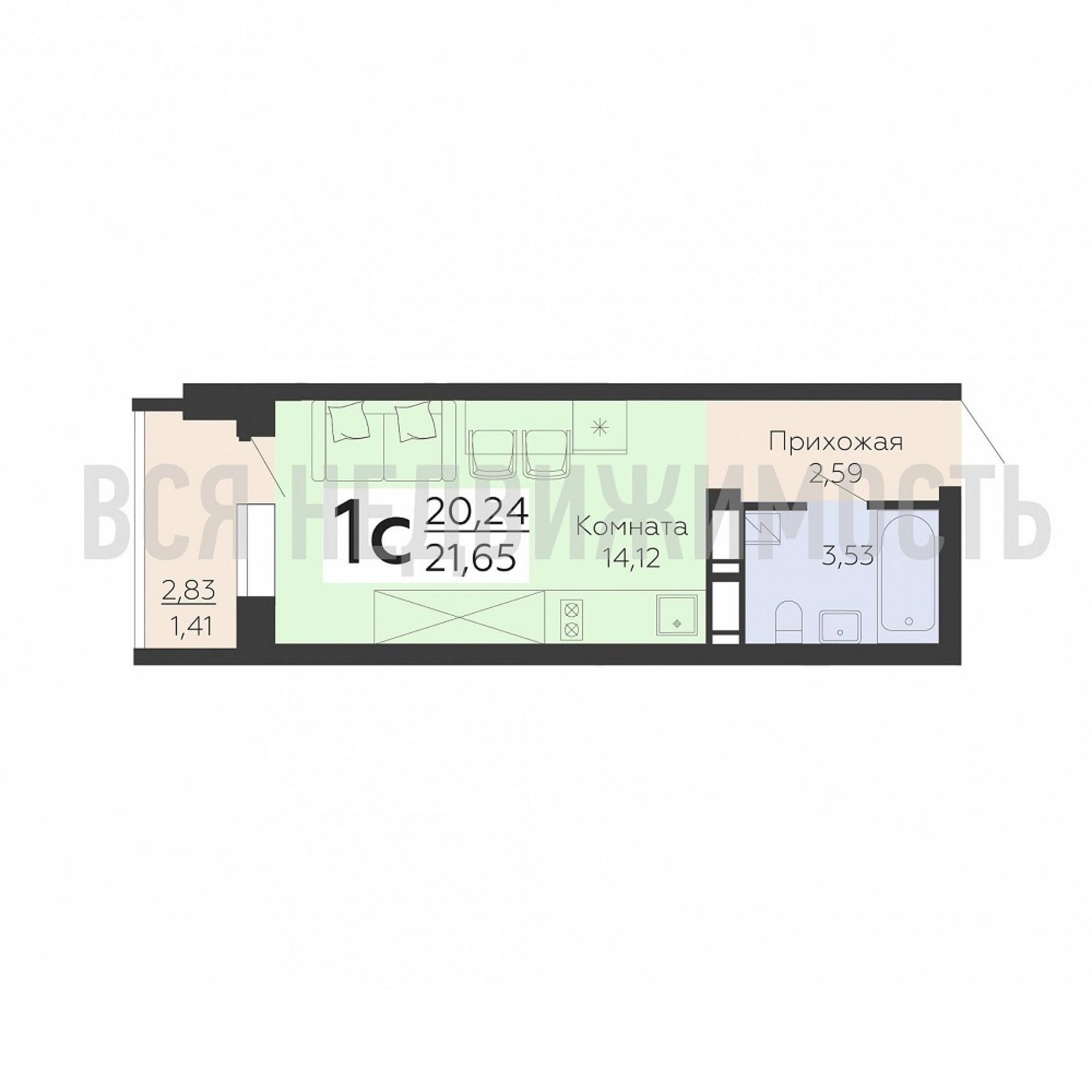 Квартиры-студии, 21.65 м² 16/19 этаж ID объекта 100090248
