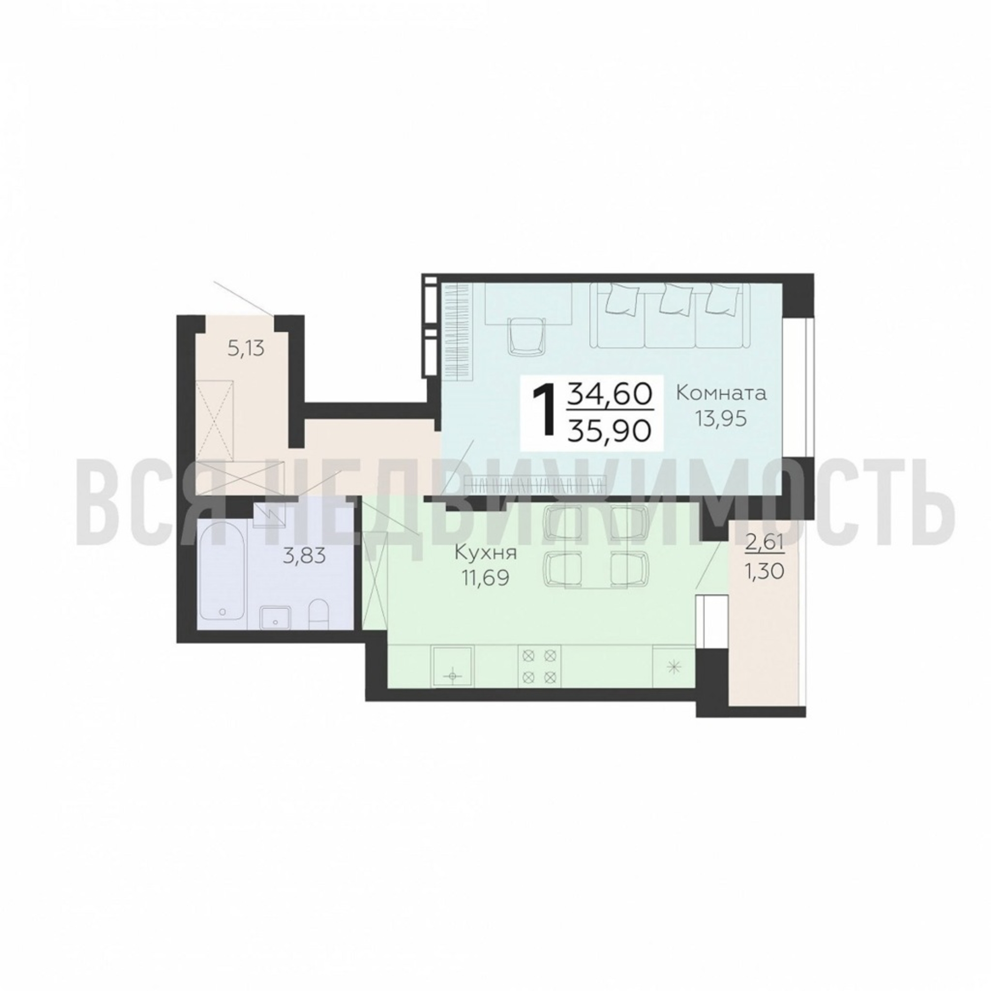 Строительная площадь35.90 м²