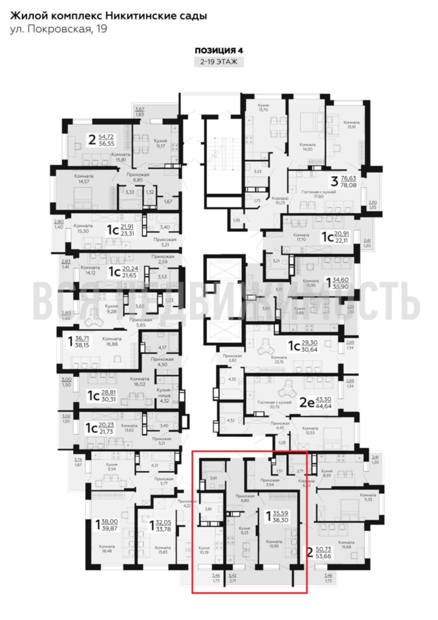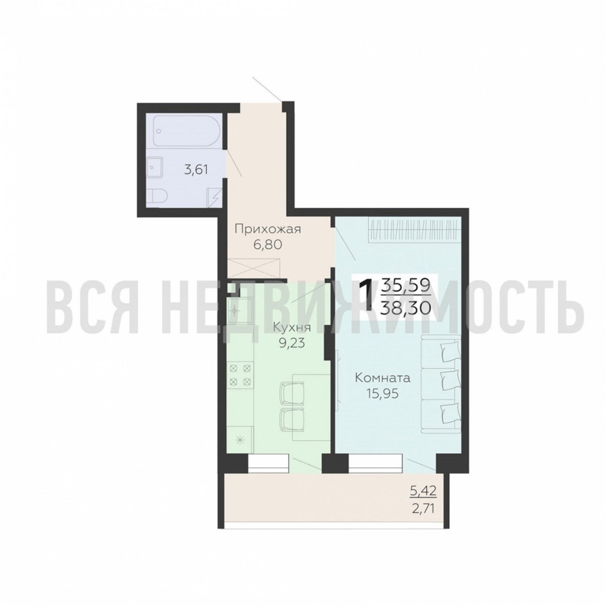 1-комнатная квартира, 38.30 м² 12/19 этаж ID объекта 100090463
