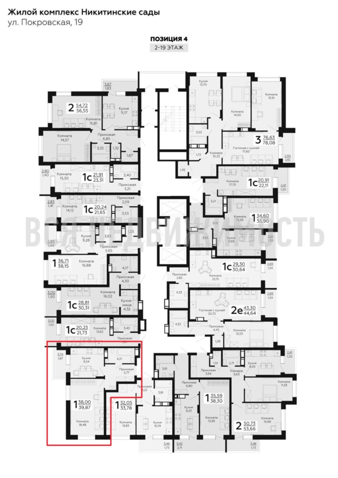 1-комнатная квартира, 39.87 м² 12/19 этаж ID объекта 100090465