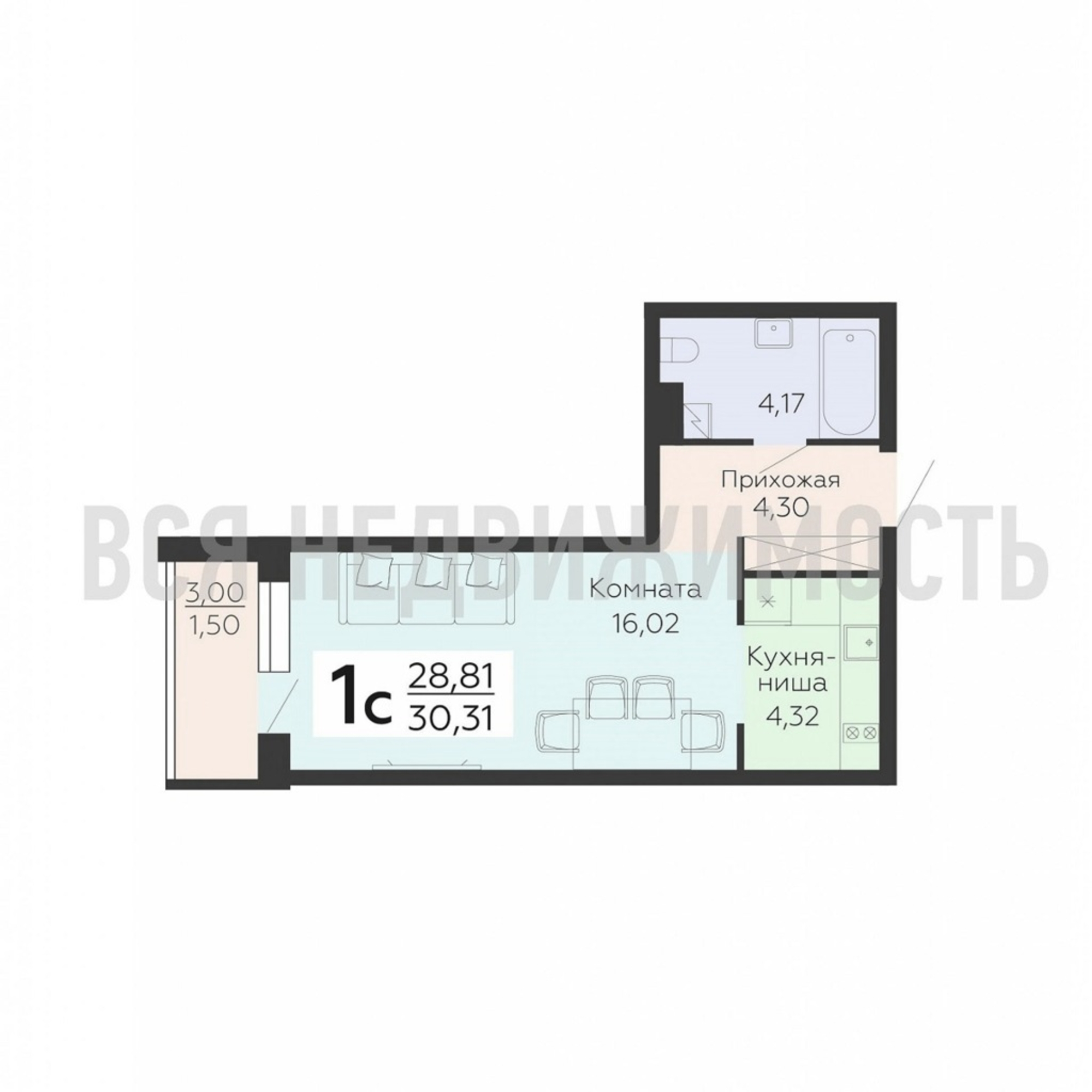 Квартиры-студии, 30.31 м² 19/19 этаж ID объекта 100090572