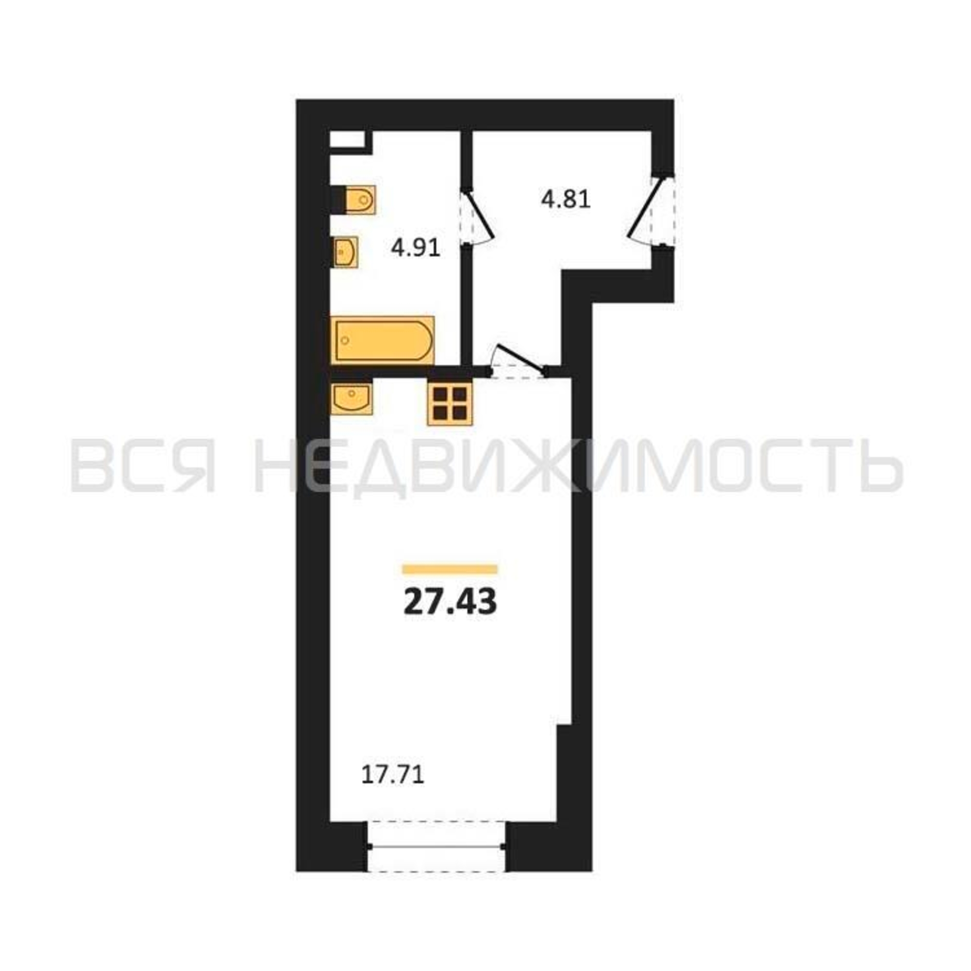 Квартиры-студии, 27.43 м² 2/10 этаж ID объекта 100090581