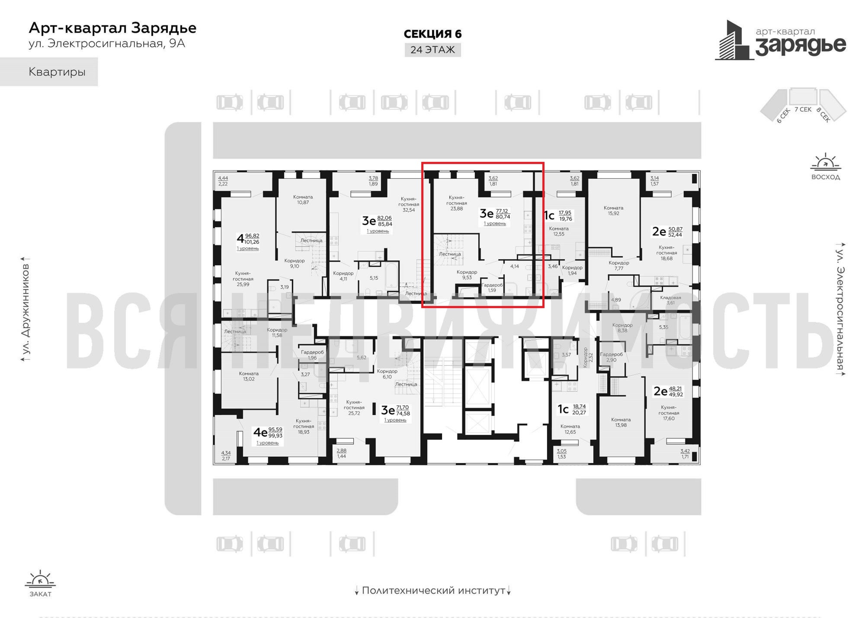 1-комнатная квартира, 80.74 м² 24/25 этаж ID объекта 100090859