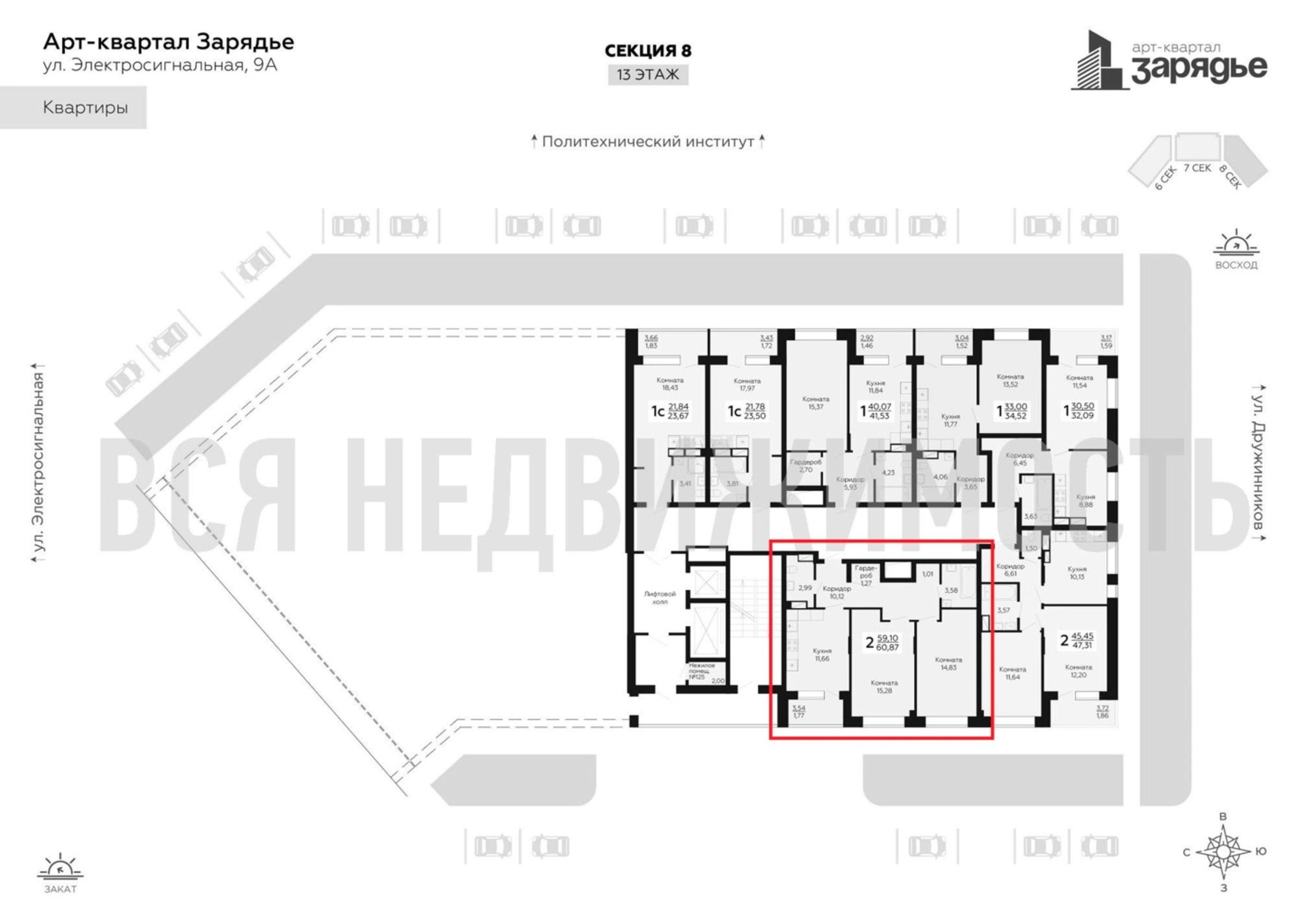 2-комнатная квартира, 60.82 м² 13/13 этаж ID объекта 100090870