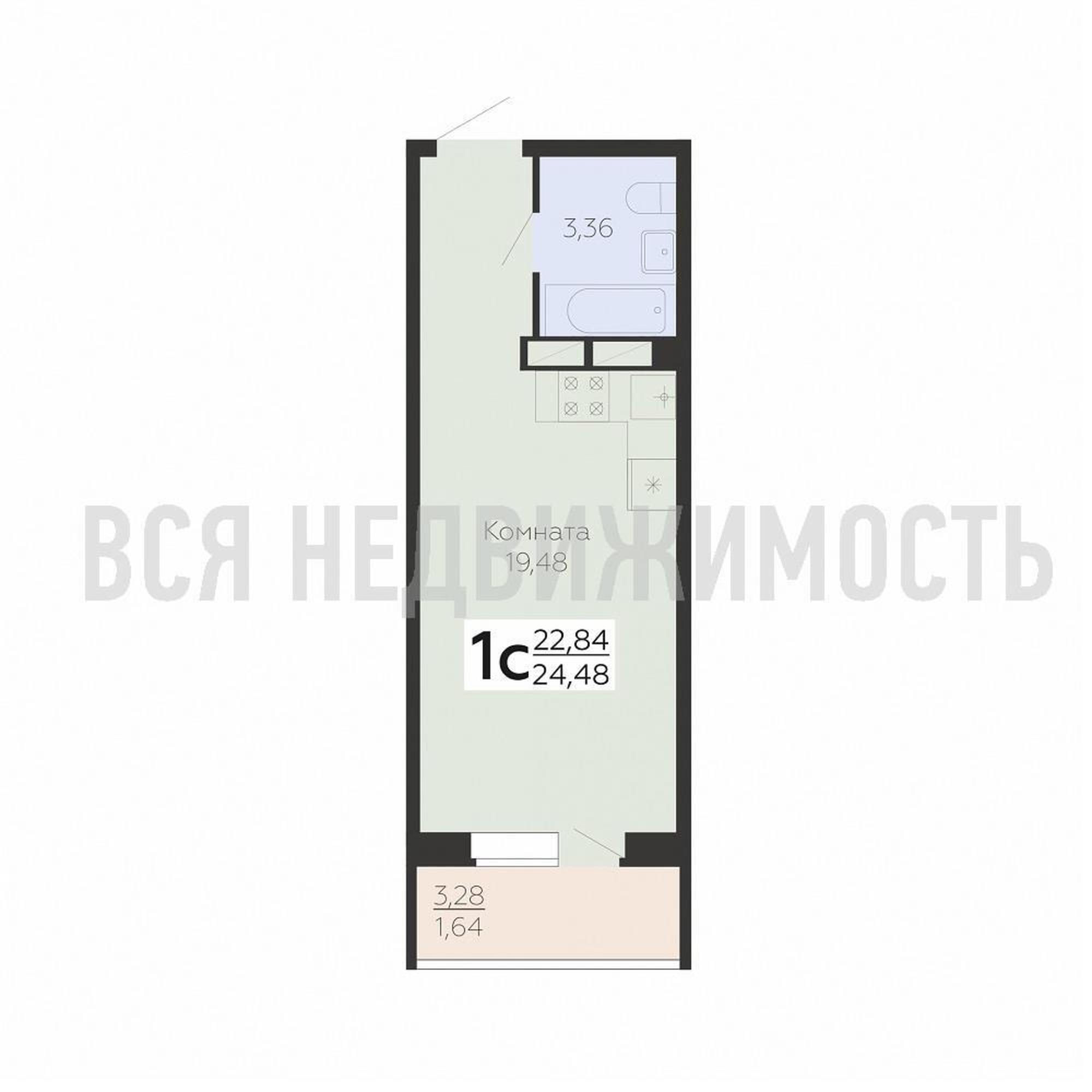 Квартиры-студии, 24.48 м² 7/10 этаж ID объекта 100090938