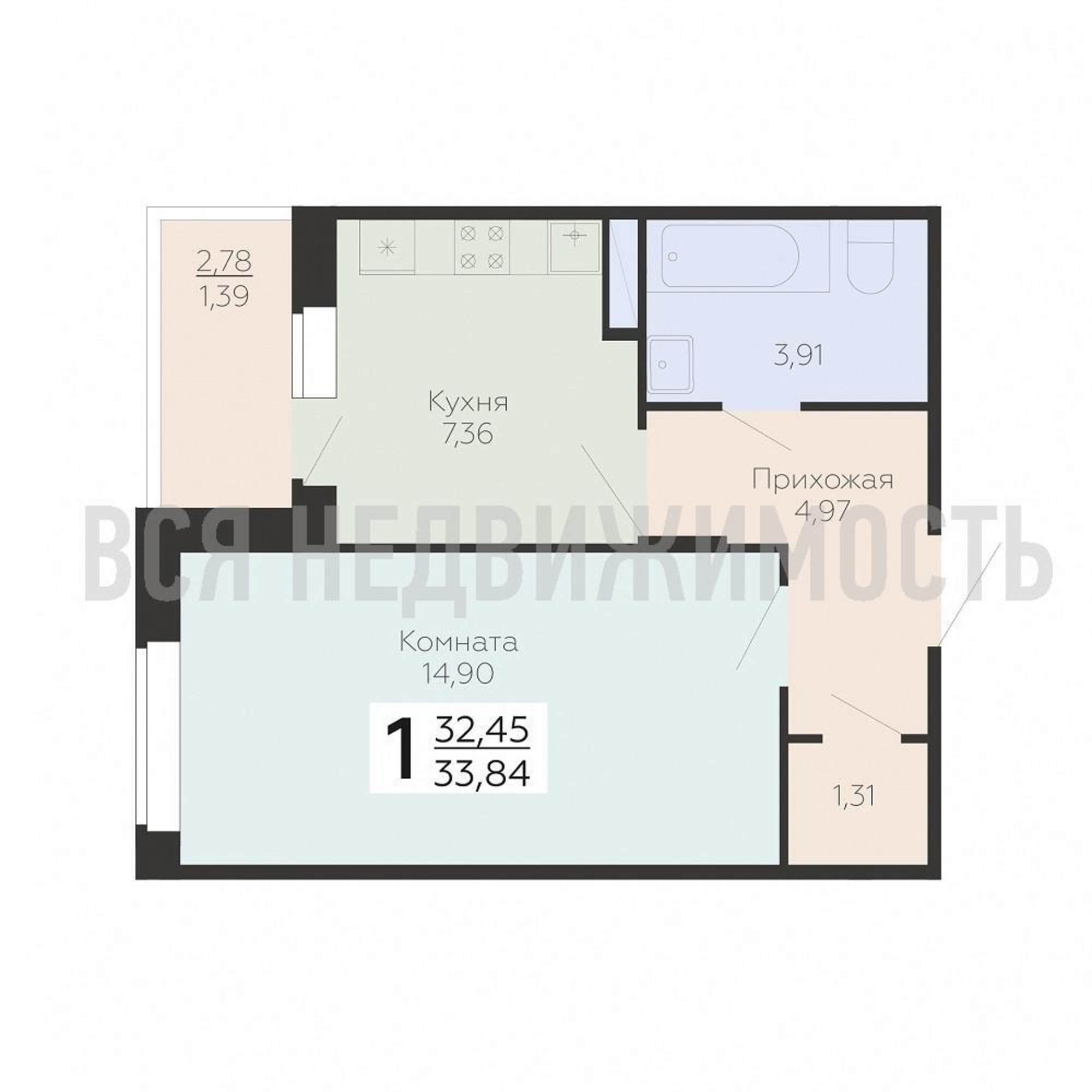 Строительная площадь33.84 м²