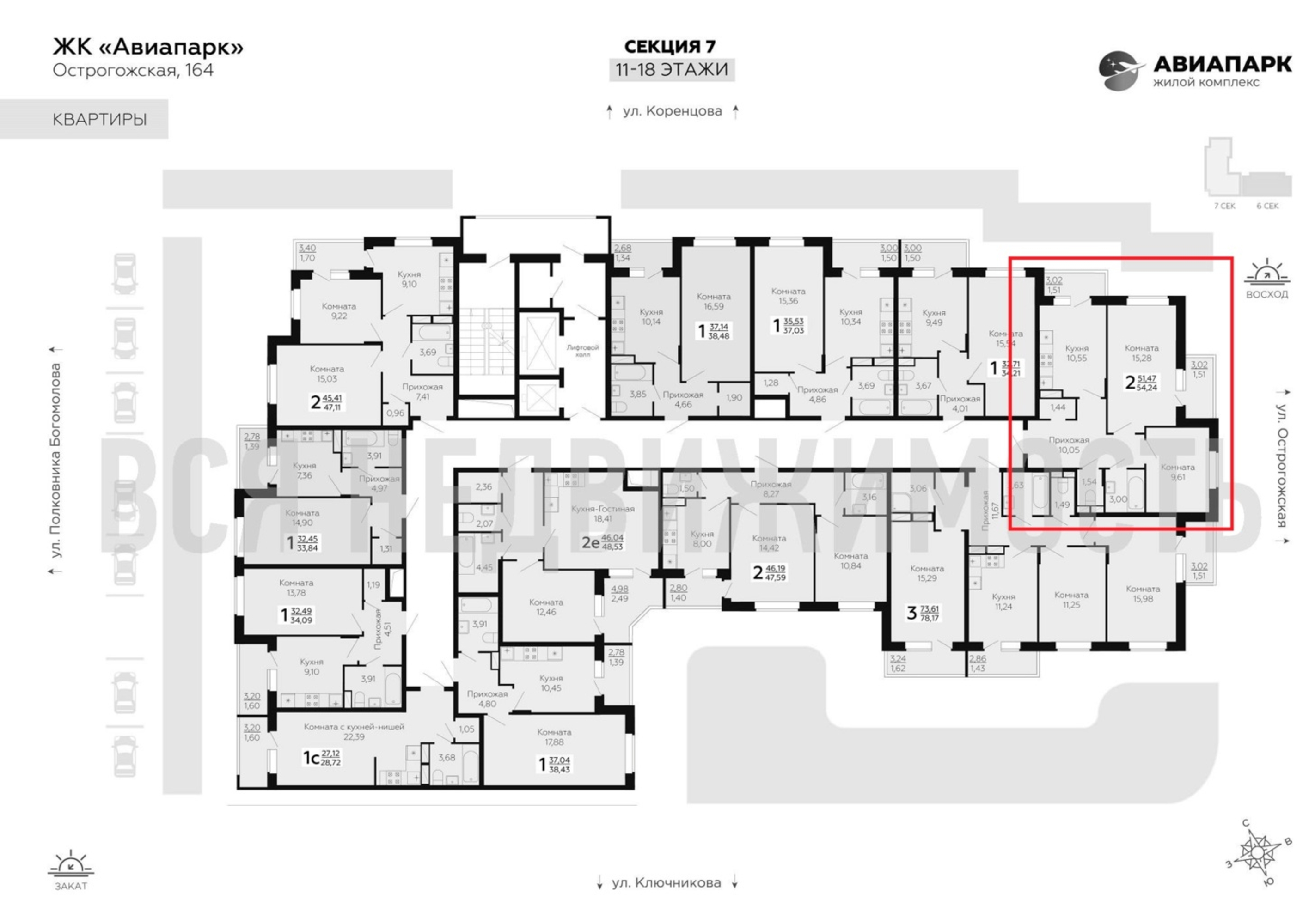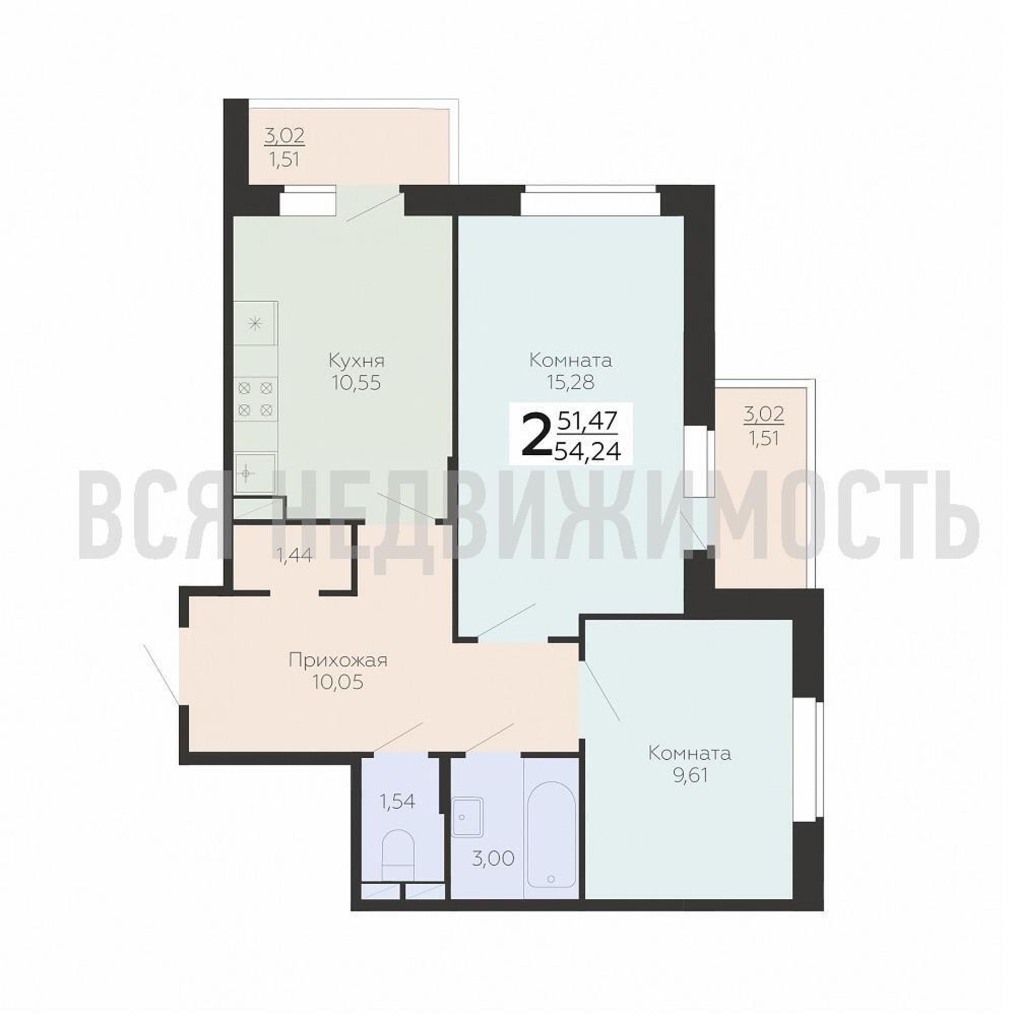 2-комнатная квартира, 54.24 м² 15/18 этаж ID объекта 100091148