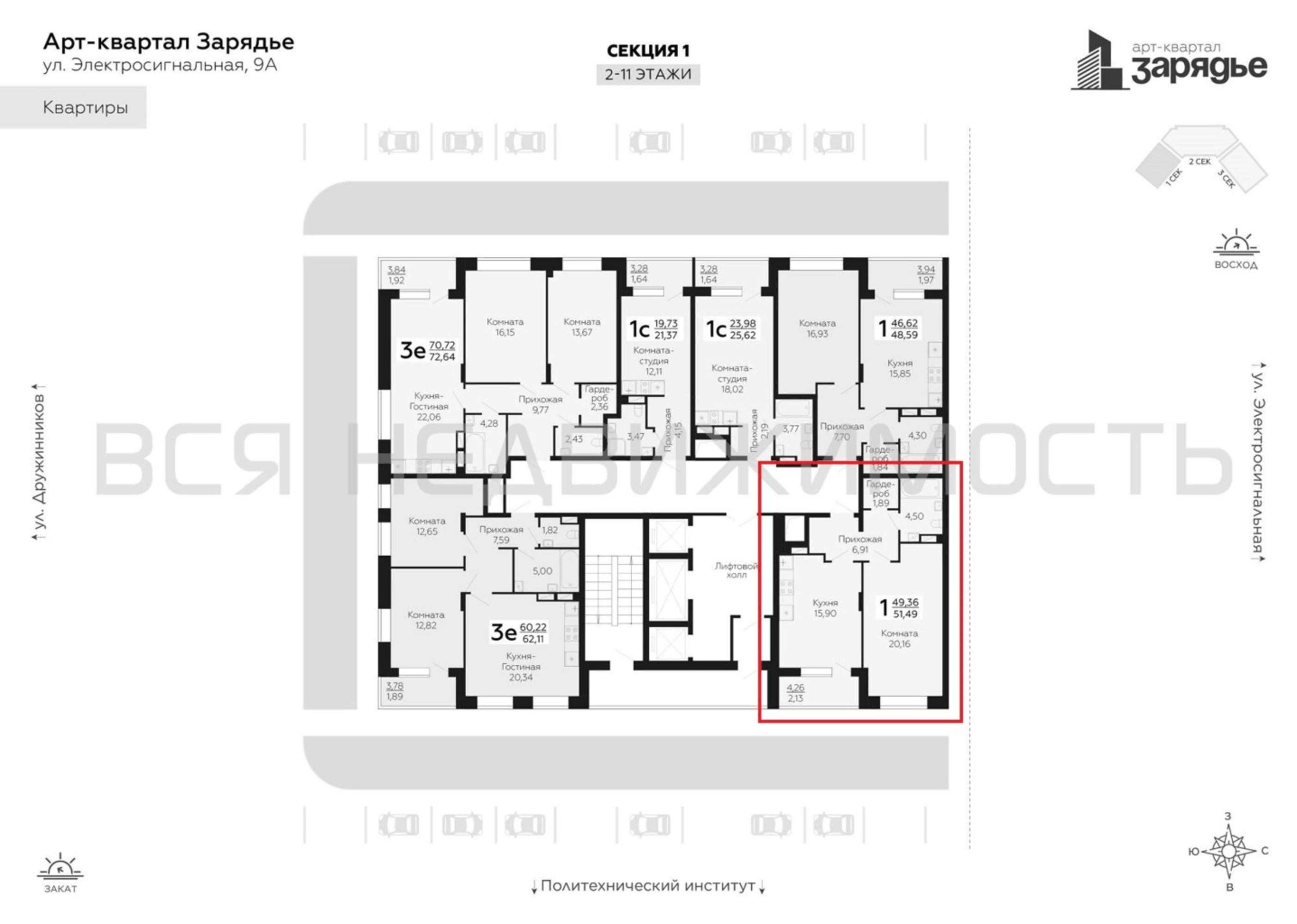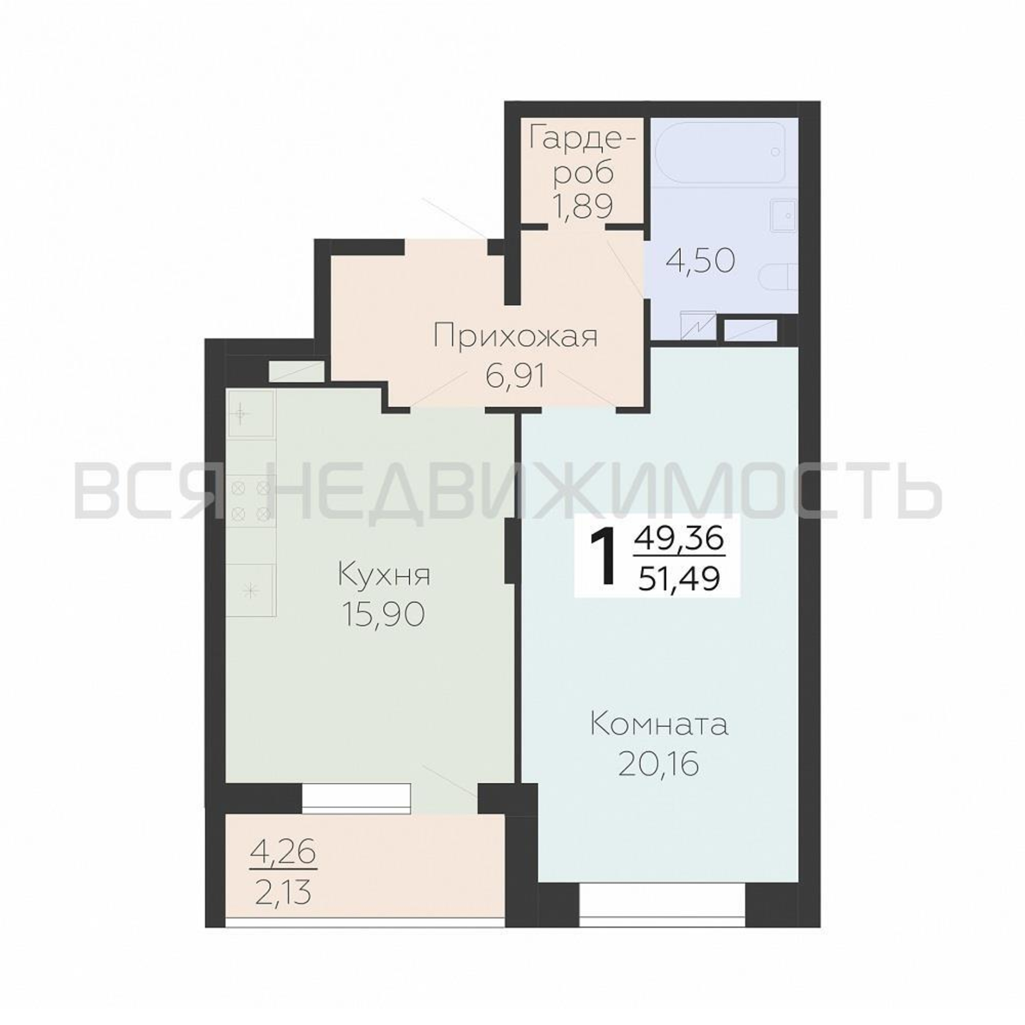 1-комнатная квартира, 51.49 м² 2/21 этаж ID объекта 100091233