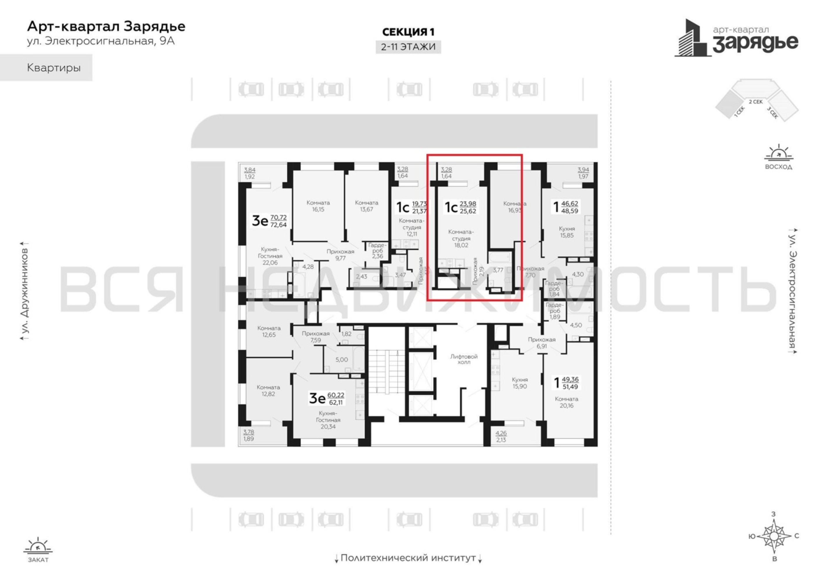 Квартиры-студии, 25.62 м² 5/21 этаж ID объекта 100091249