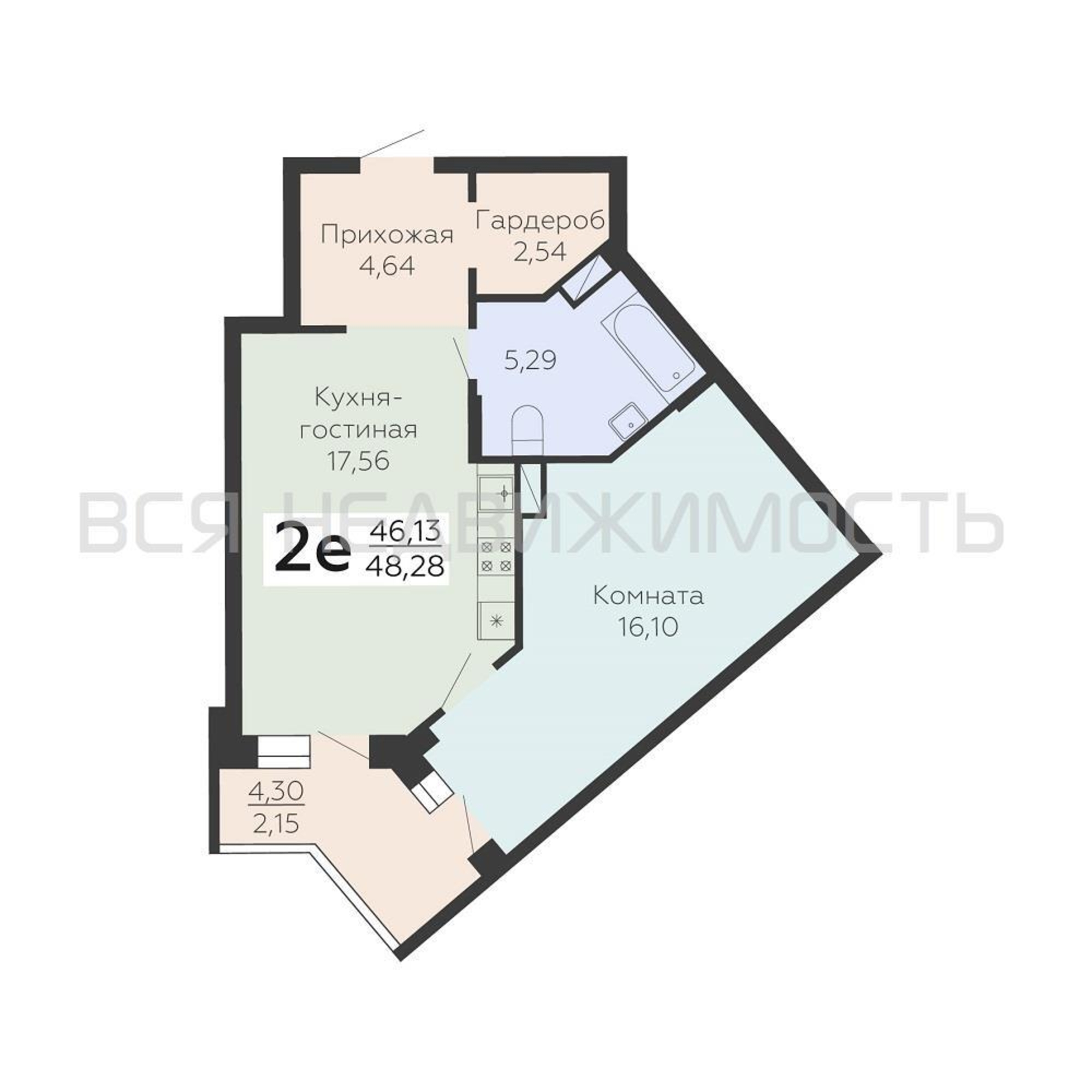 1-комнатная квартира, 48.28 м² 2/18 этаж ID объекта 100091292