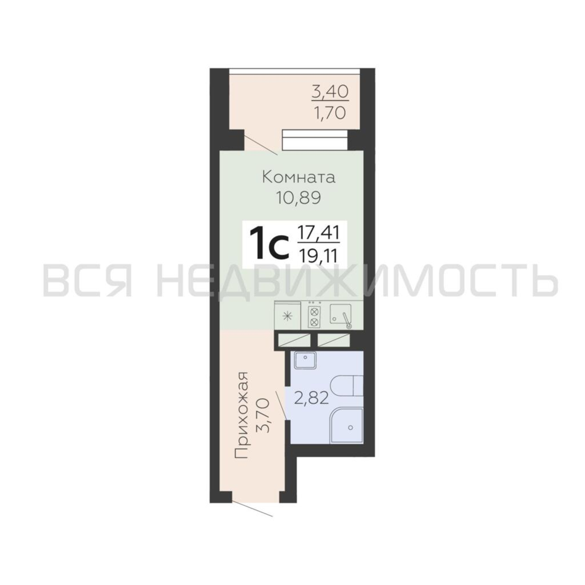 Квартиры-студии, 19.11 м² 11/18 этаж ID объекта 100091417