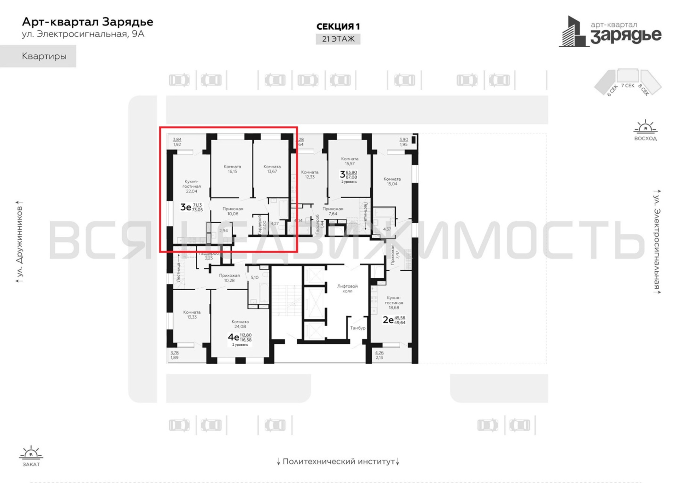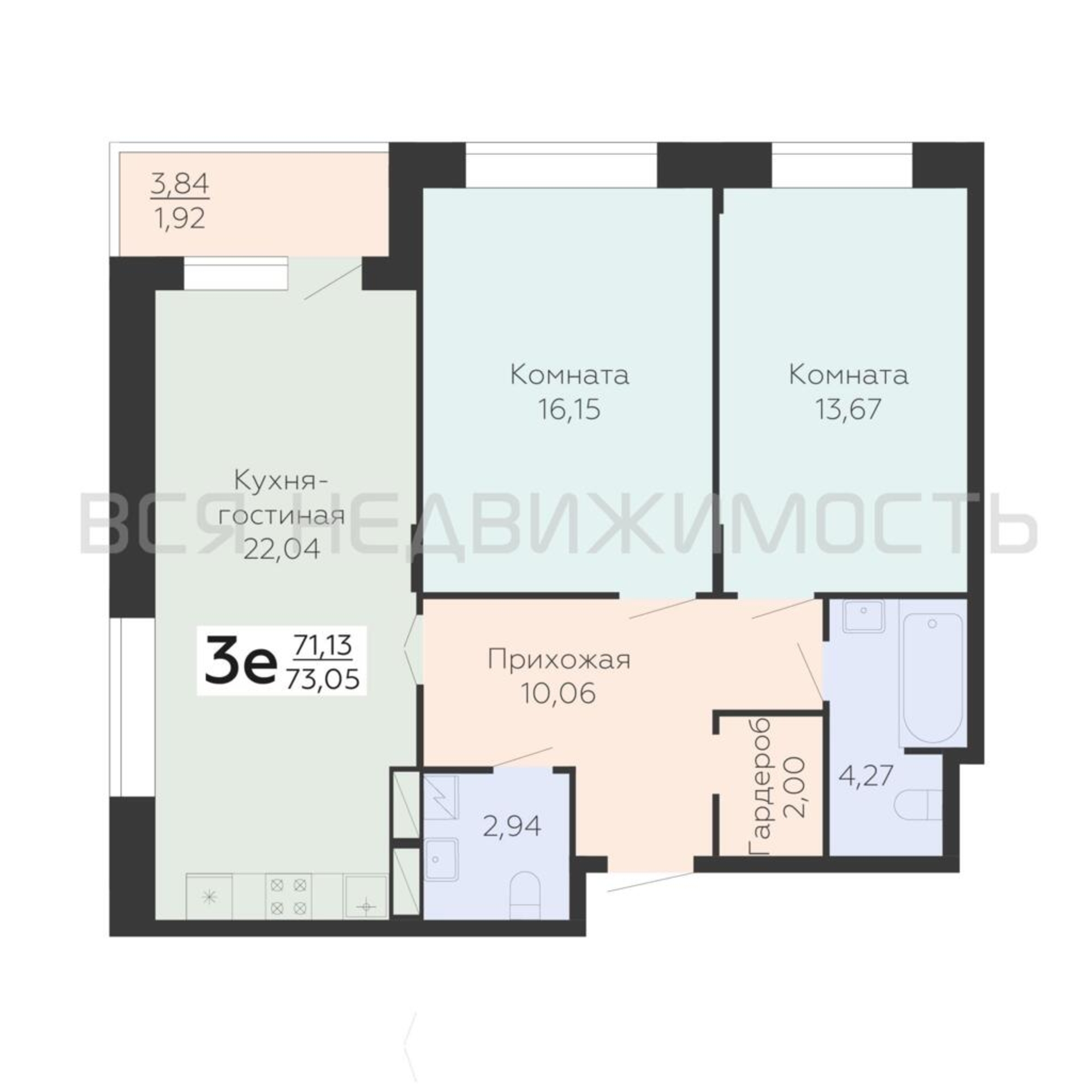 2-комнатная квартира, 73.05 м² 21/21 этаж ID объекта 100091454