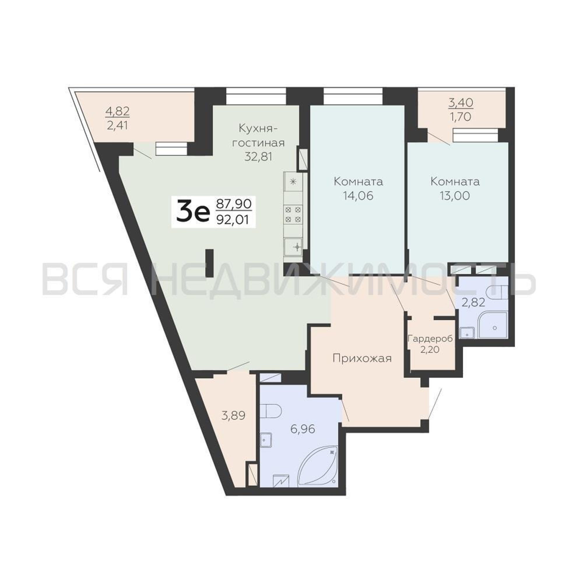 2-комнатная квартира, 92.01 м² 14/18 этаж ID объекта 100091467