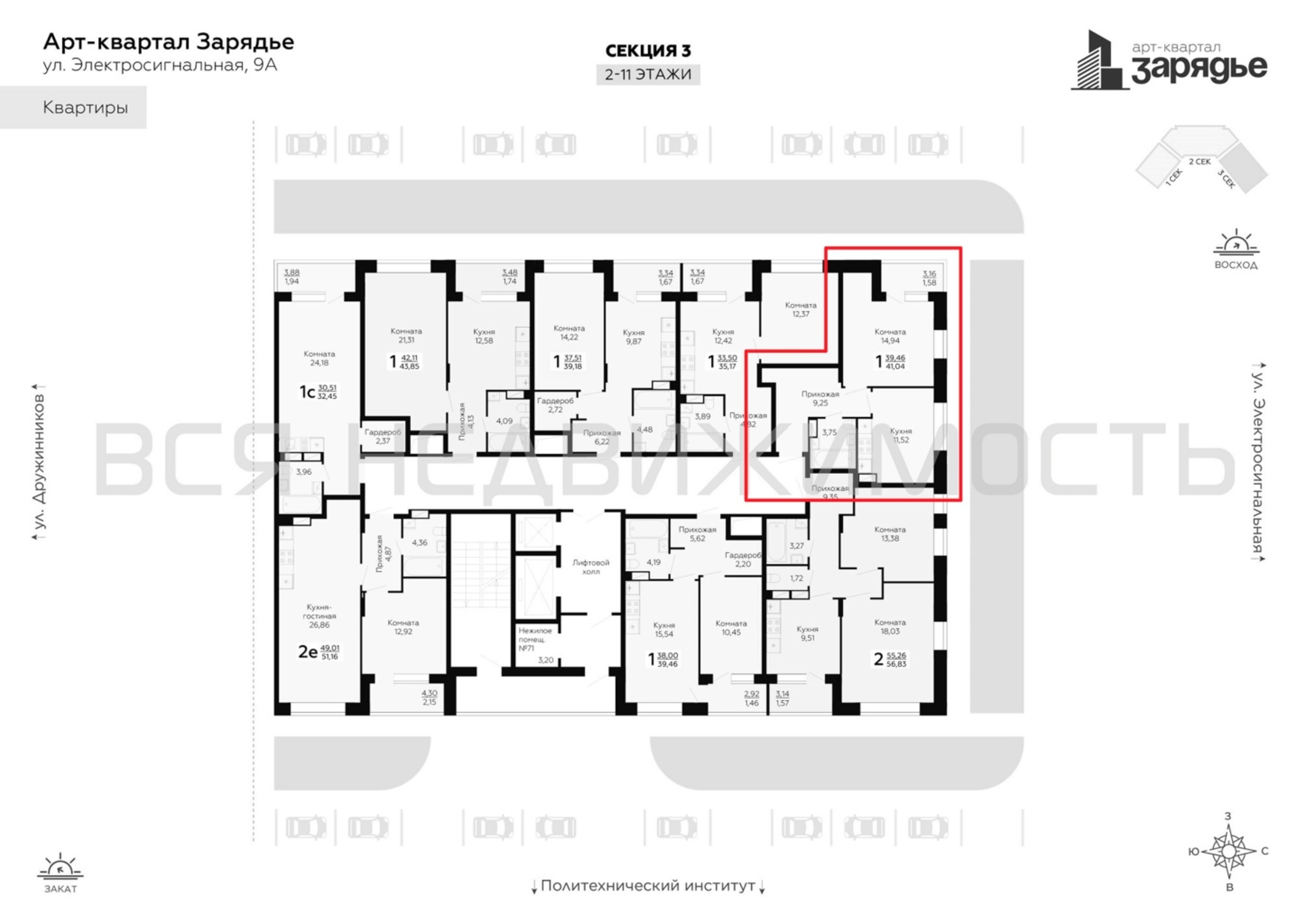 1-комнатная квартира, 41.04 м² 2/15 этаж ID объекта 100091489