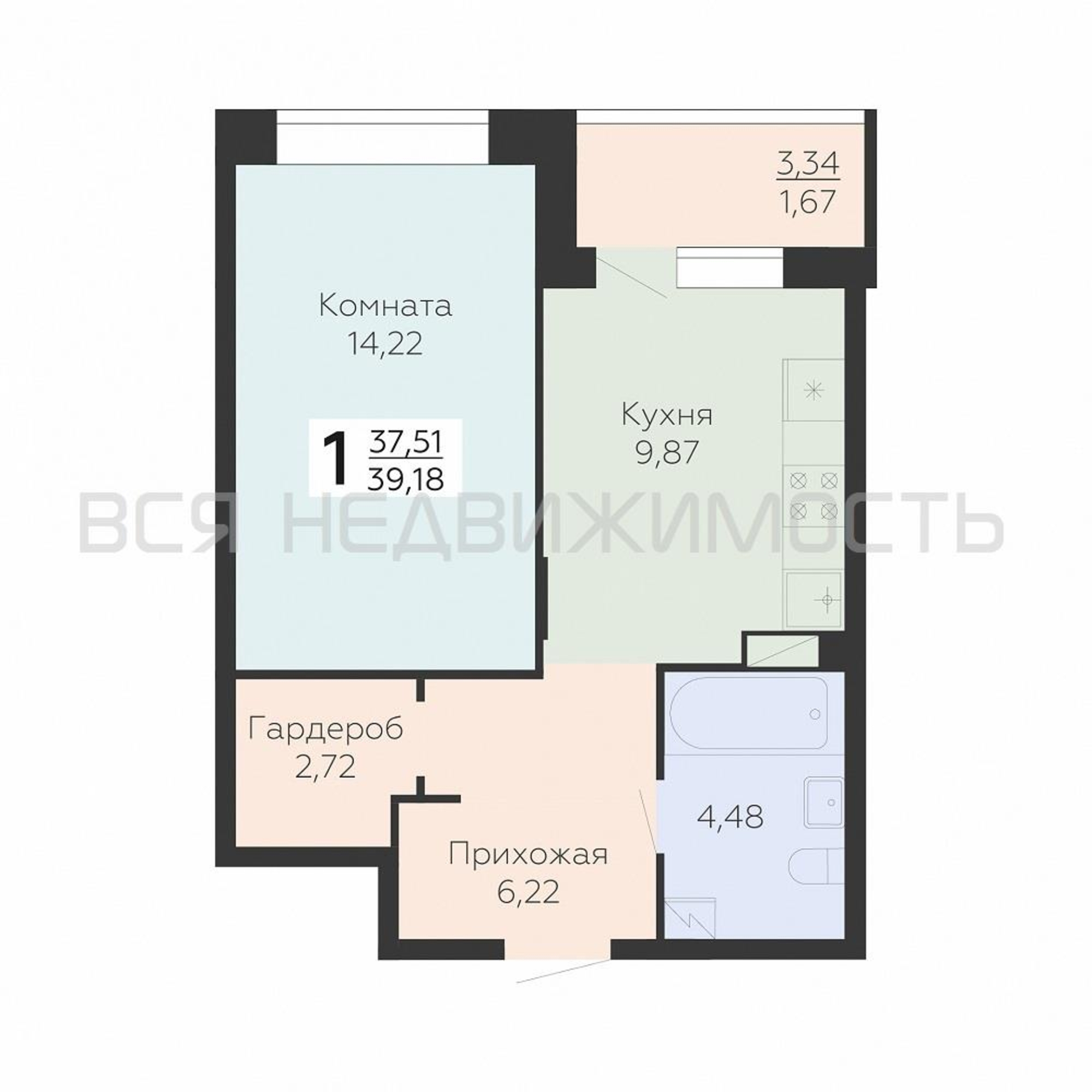 Строительная площадь39.18 м²