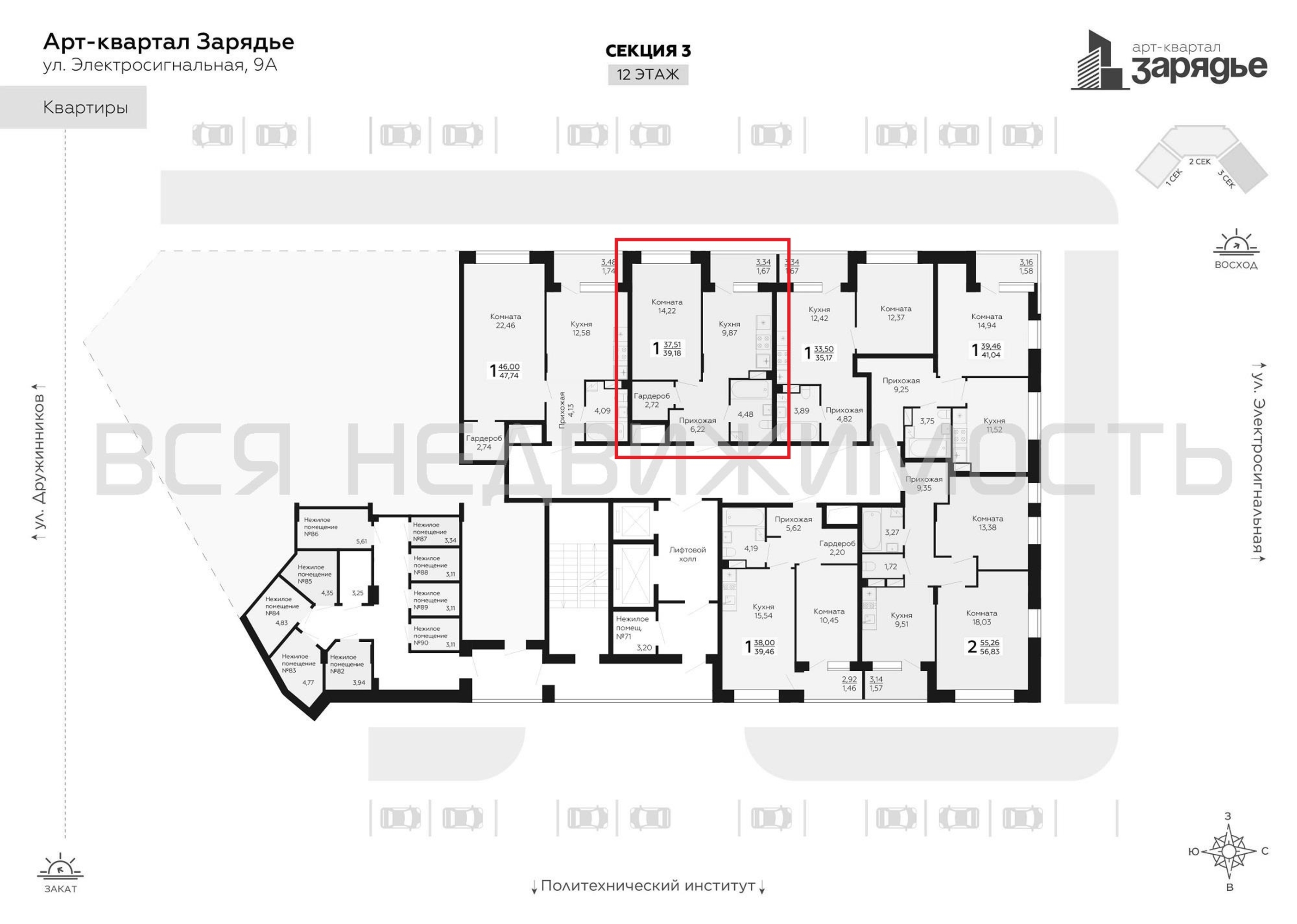 1-комнатная квартира, 39.18 м² 12/15 этаж ID объекта 100091565