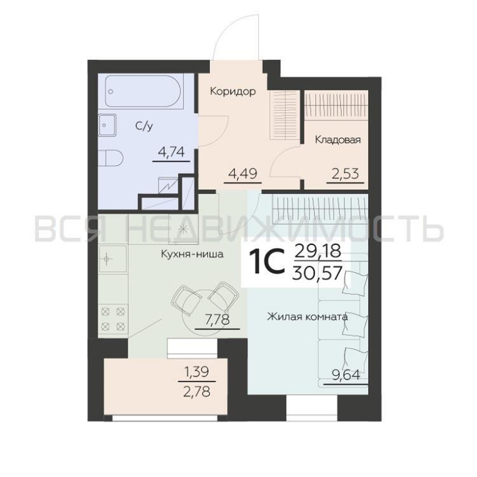 Квартиры-студии, 30.57 м² 2/8 этаж ID объекта 100092105