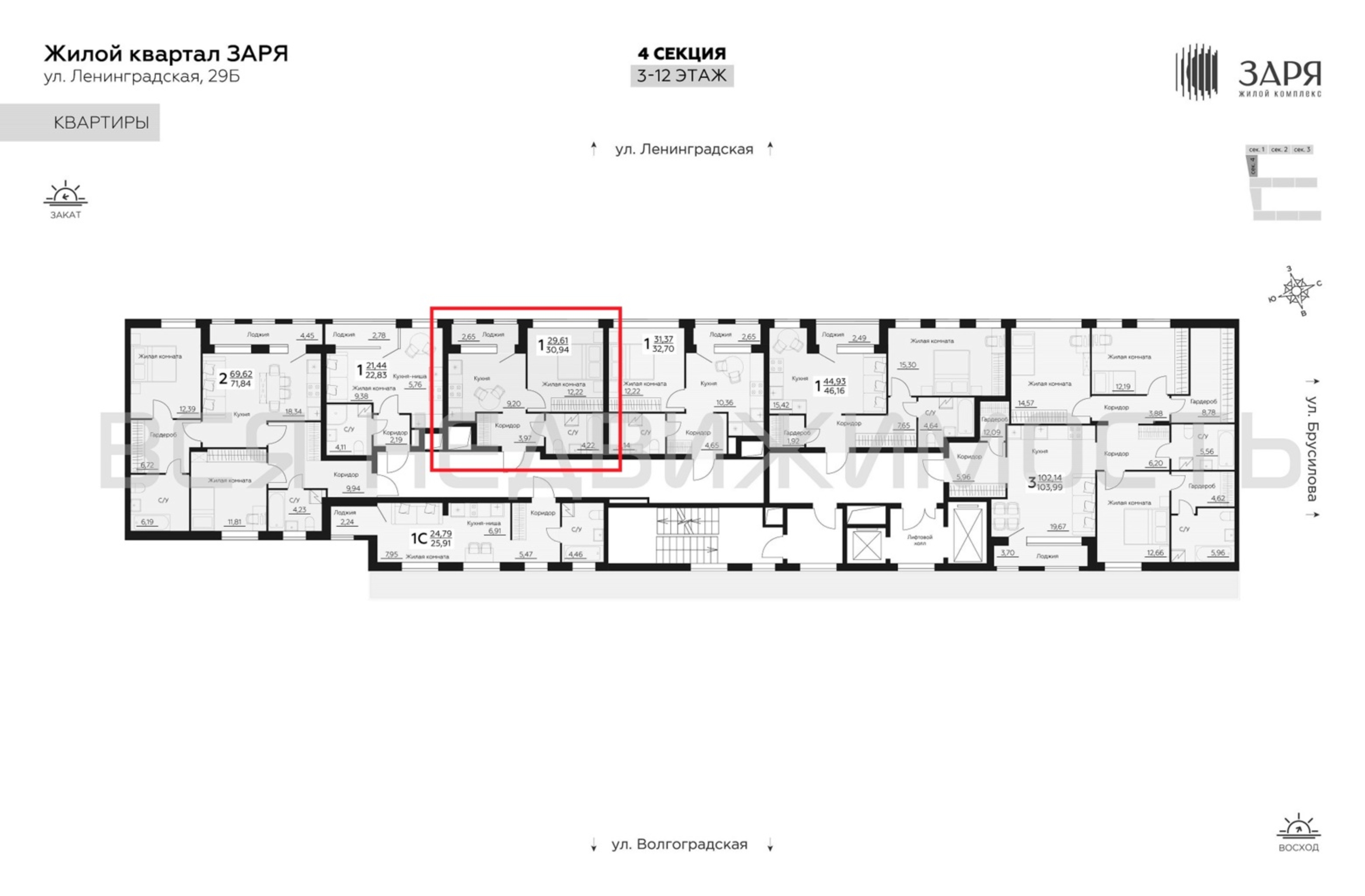 1-комнатная квартира, 30.94 м² 12/12 этаж ID объекта 100092483