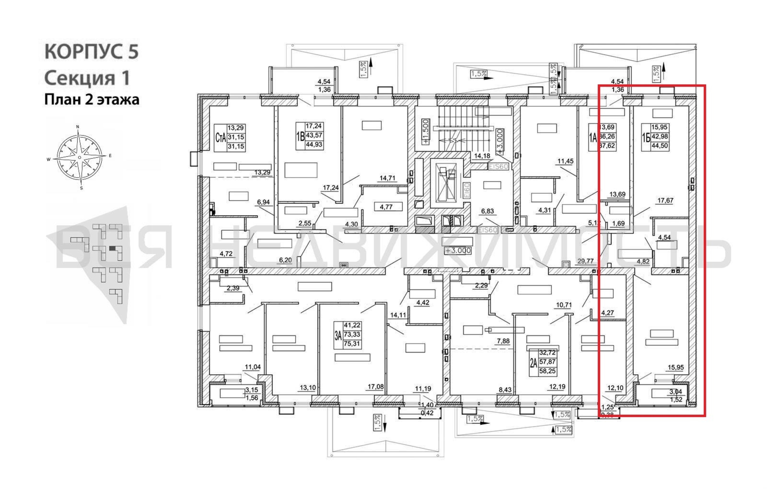 1-комнатная квартира, 44.50 м² 2/10 этаж ID объекта 100092509