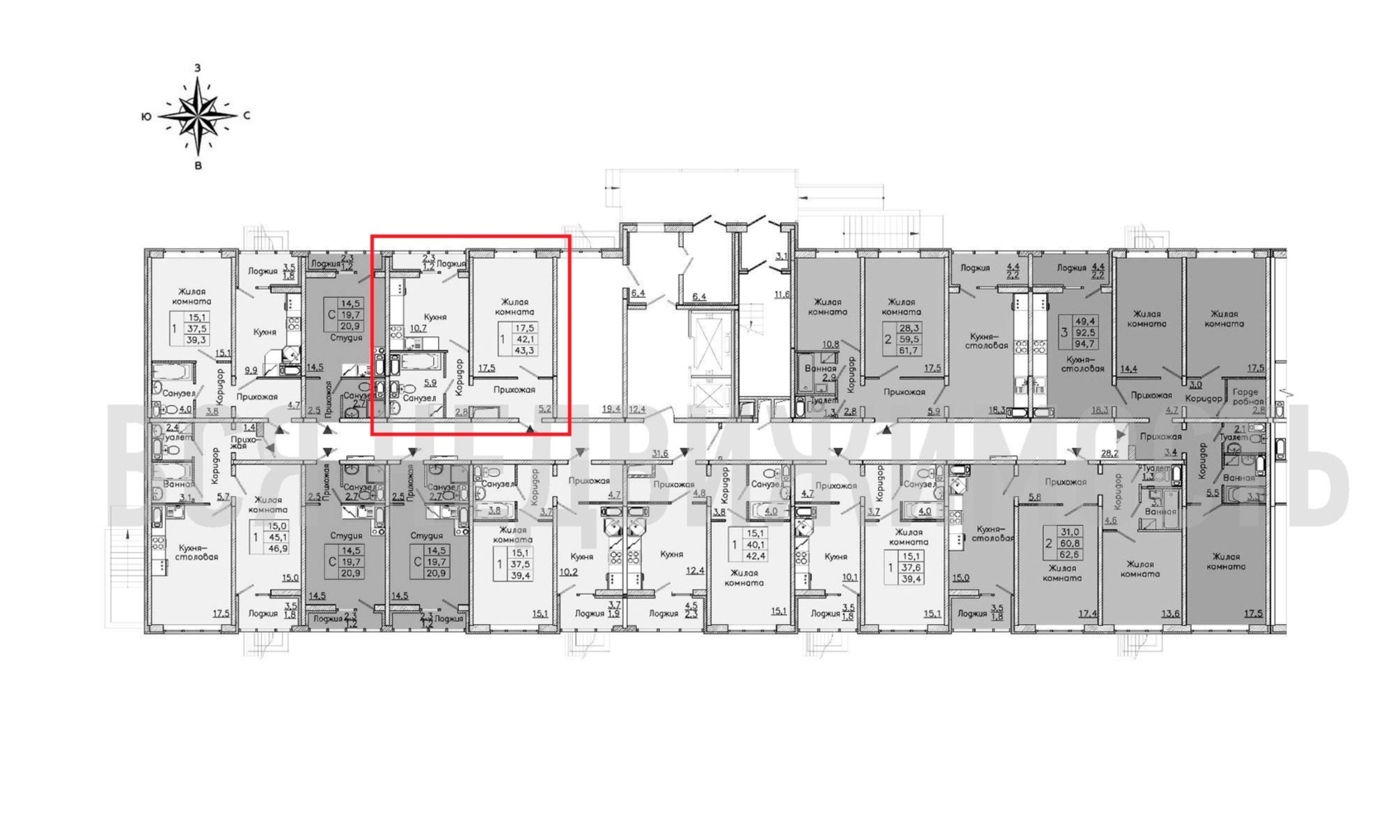 1-комнатная квартира, 43.30 м² 1/18 этаж ID объекта 100092923