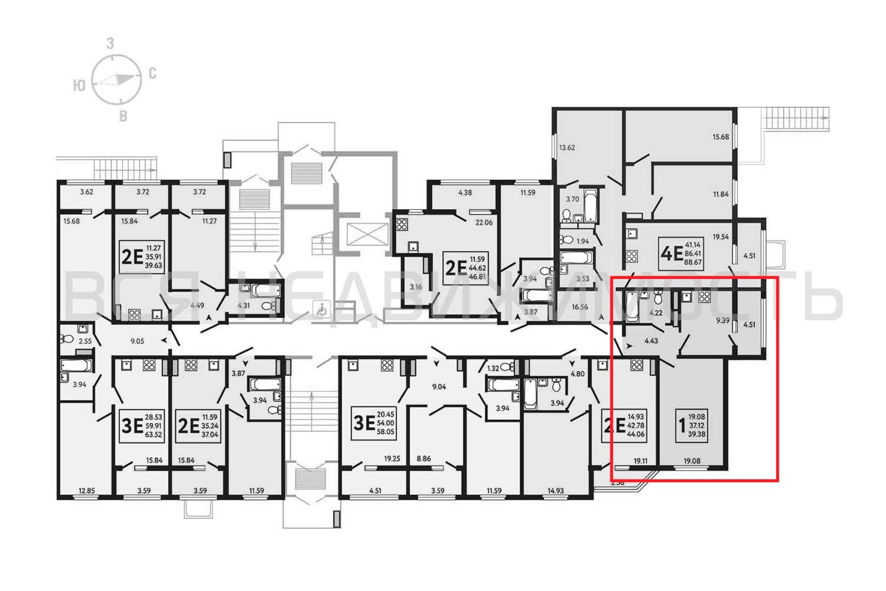 1-комнатная квартира, 39.38 м² 1/14 этаж ID объекта 100092940