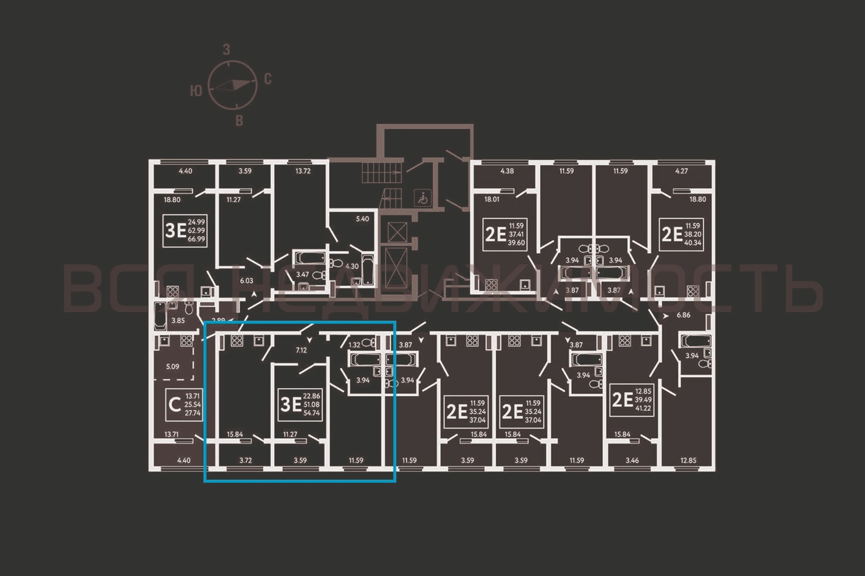2-комнатная квартира, 54.74 м² 11/14 этаж ID объекта 100093046