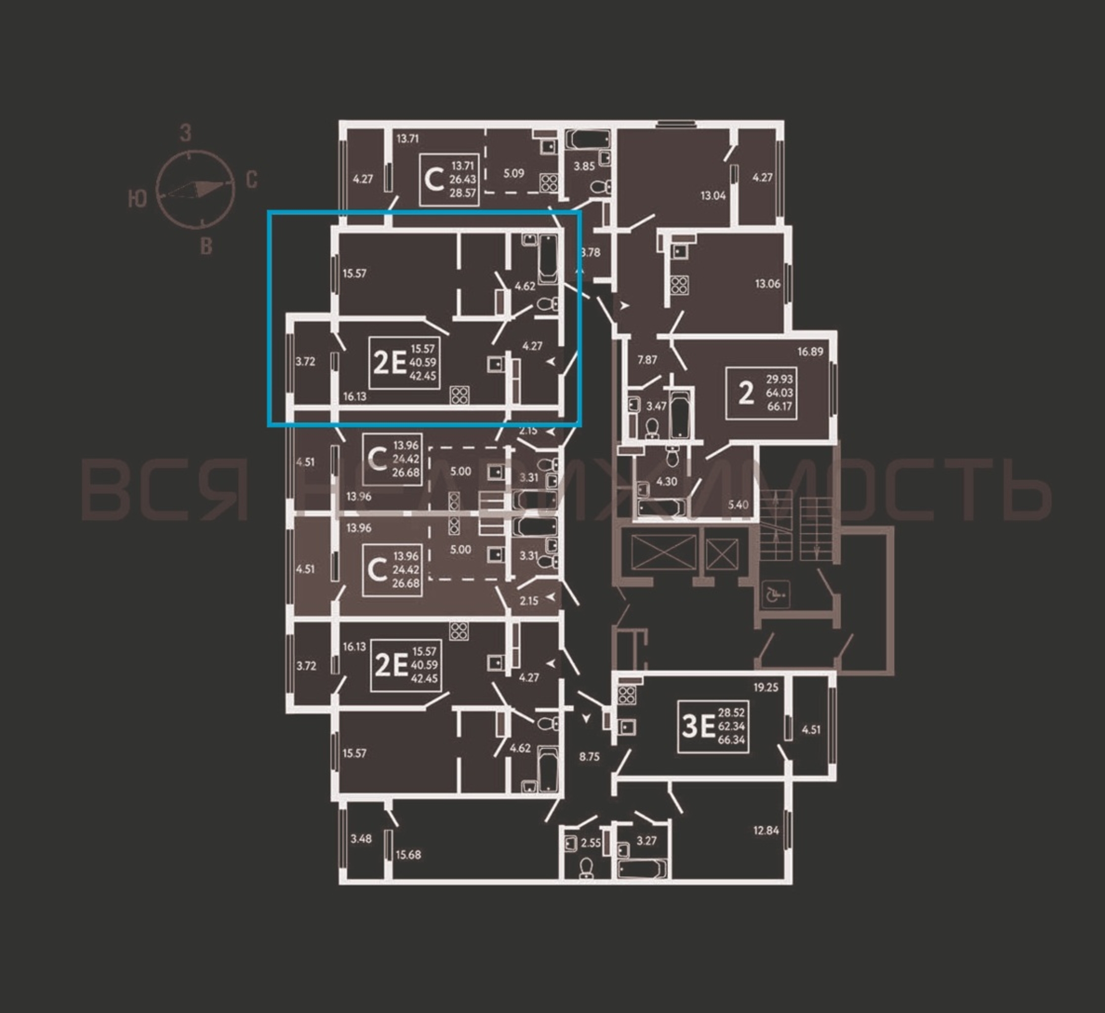 1-комнатная квартира, 42.45 м² 4/14 этаж ID объекта 100093066