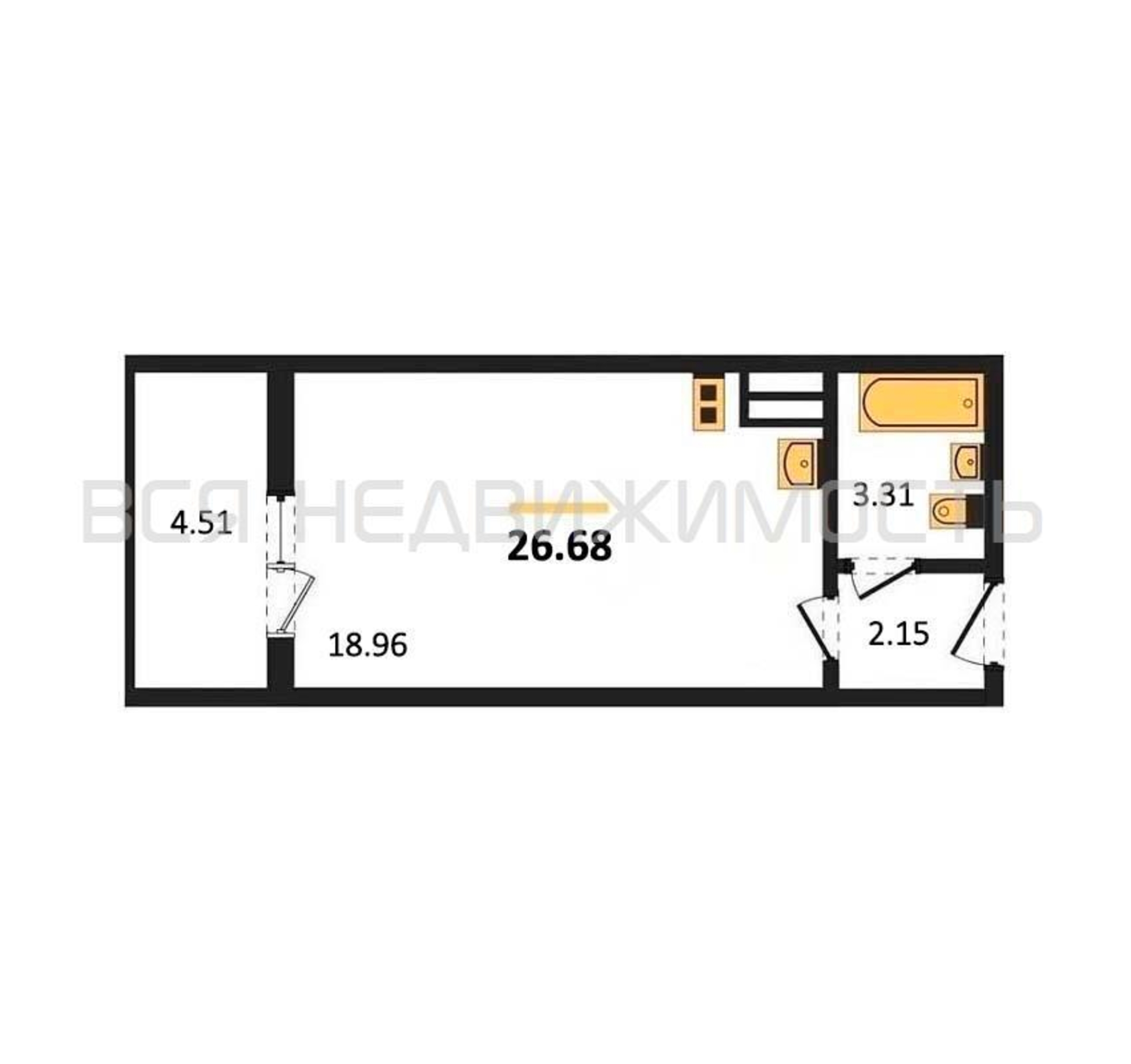 Квартиры-студии, 26.68 м² 6/14 этаж ID объекта 100093078