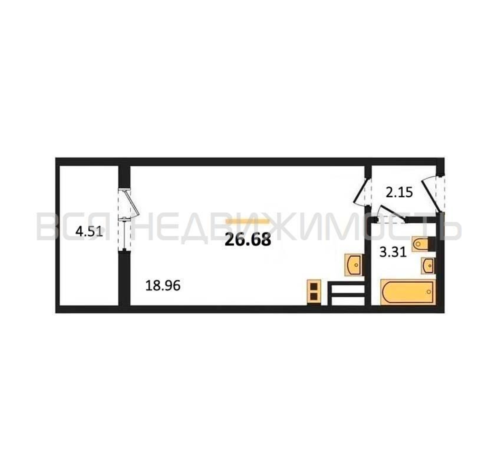 Квартиры-студии, 26.68 м² 6/14 этаж ID объекта 100093079