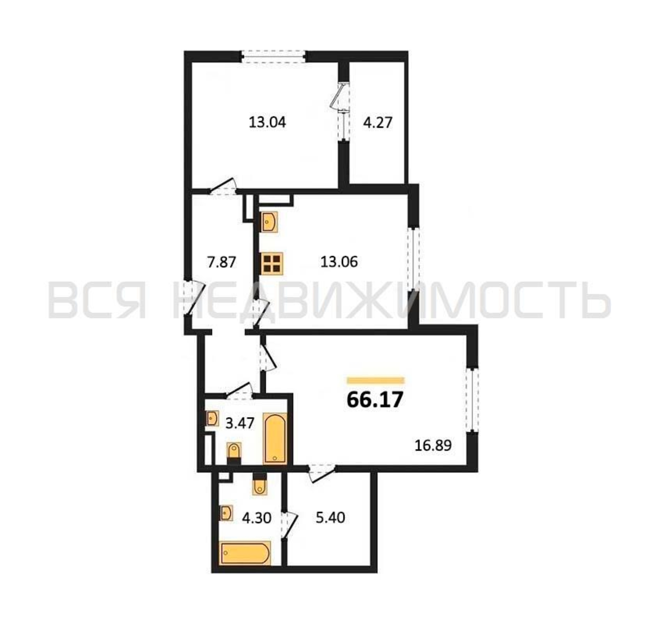 2-комнатная квартира, 66.17 м² 6/14 этаж ID объекта 100093082