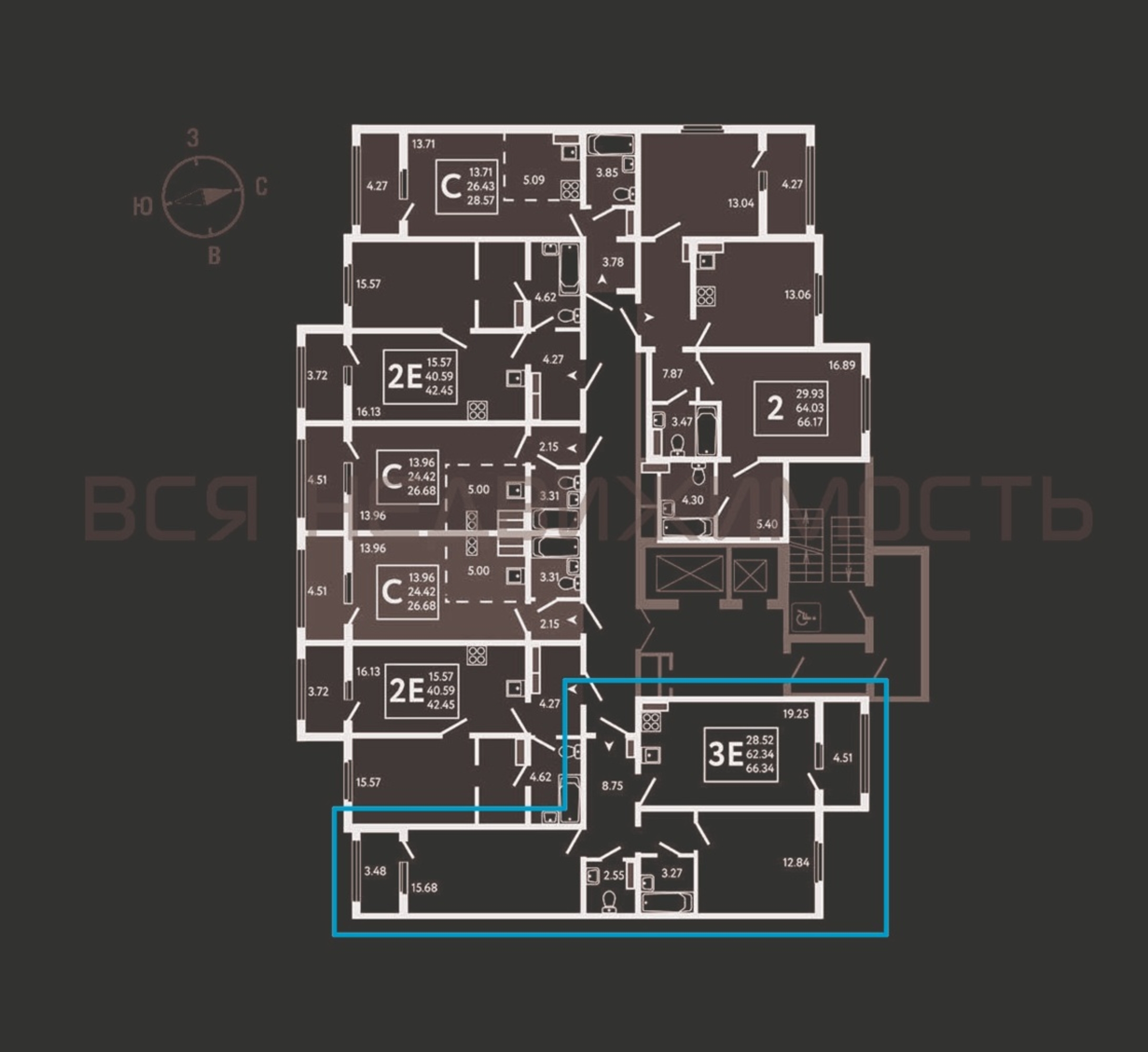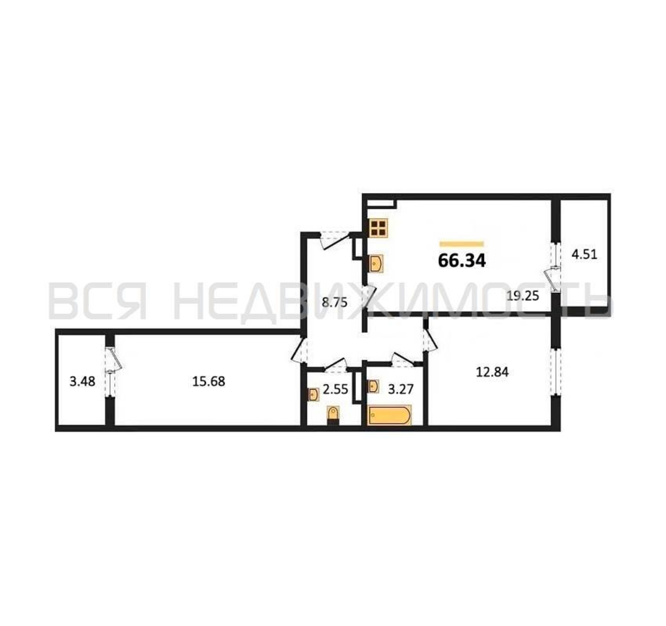 2-комнатная квартира, 66.34 м² 10/14 этаж ID объекта 100093090