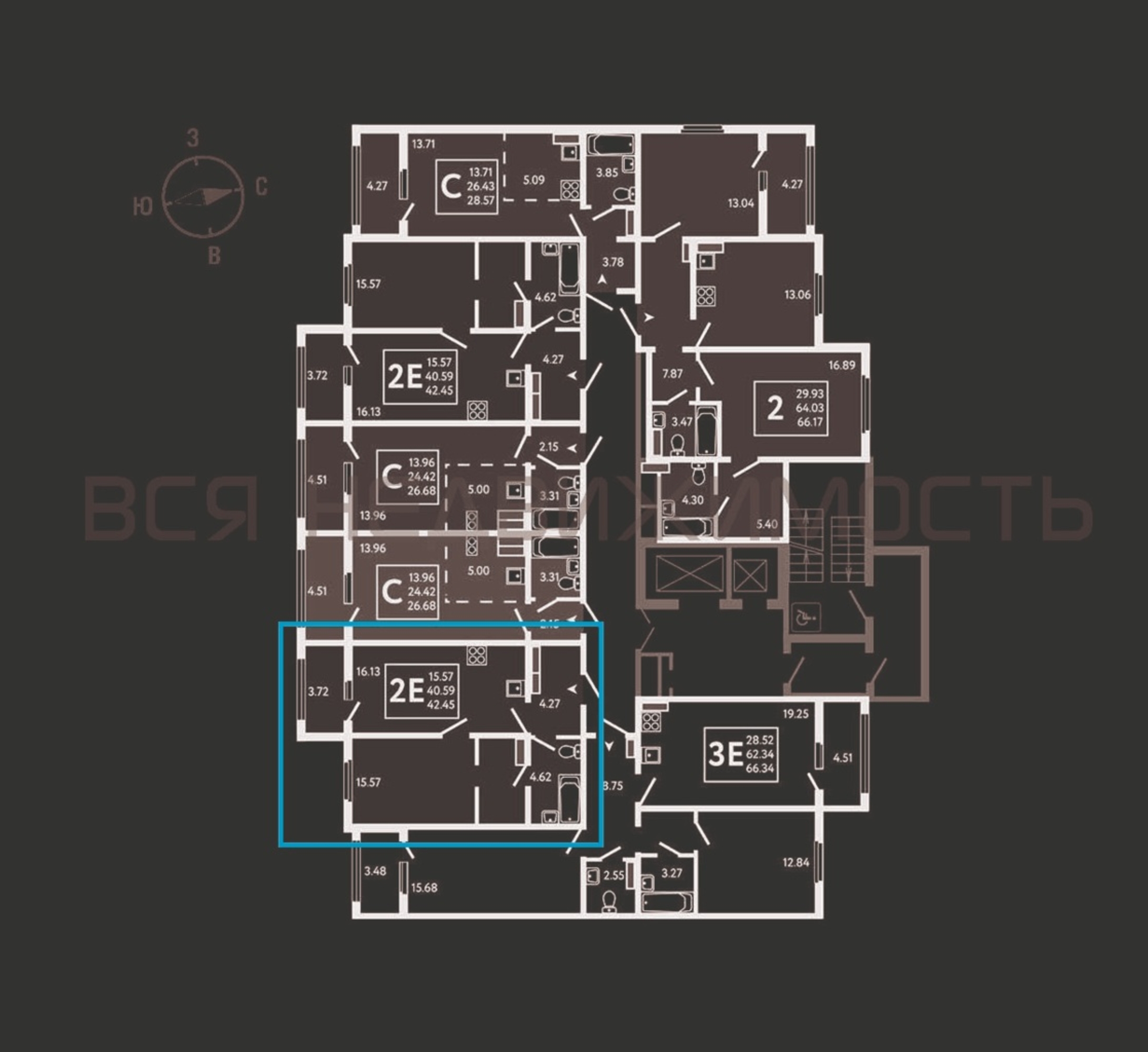 1-комнатная квартира, 42.45 м² 10/14 этаж ID объекта 100093091