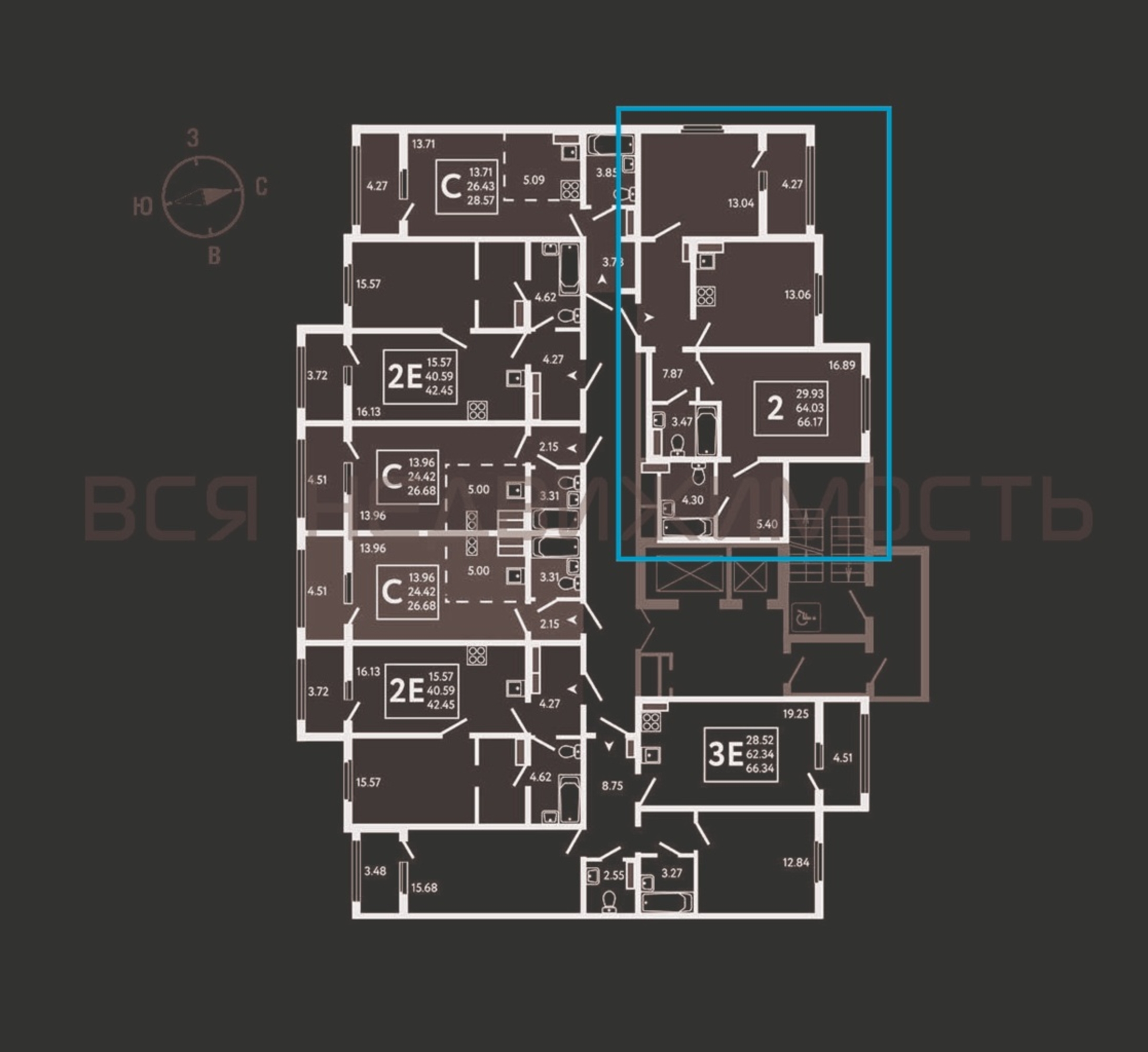 2-комнатная квартира, 66.17 м² 13/14 этаж ID объекта 100093110