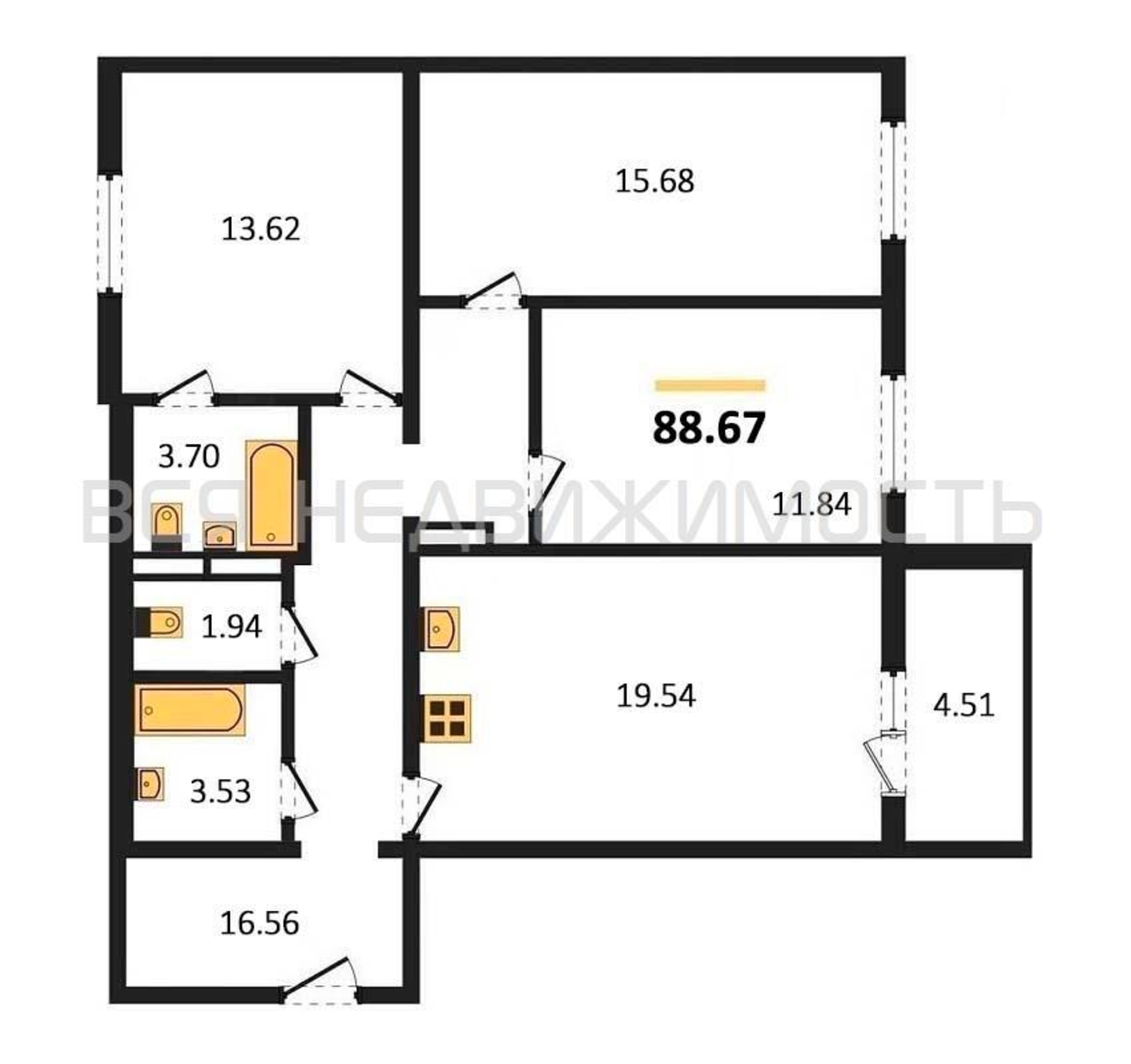 3-комнатная квартира, 88.67 м² 4/14 этаж ID объекта 100093113