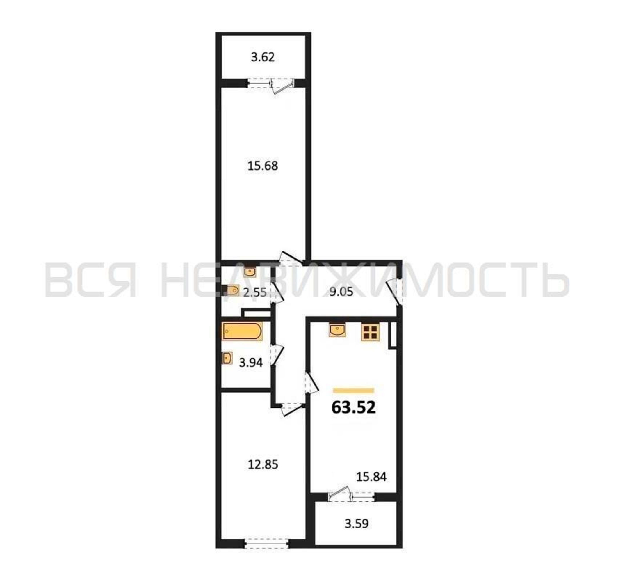 2-комнатная квартира, 63.52 м² 4/14 этаж ID объекта 100093119