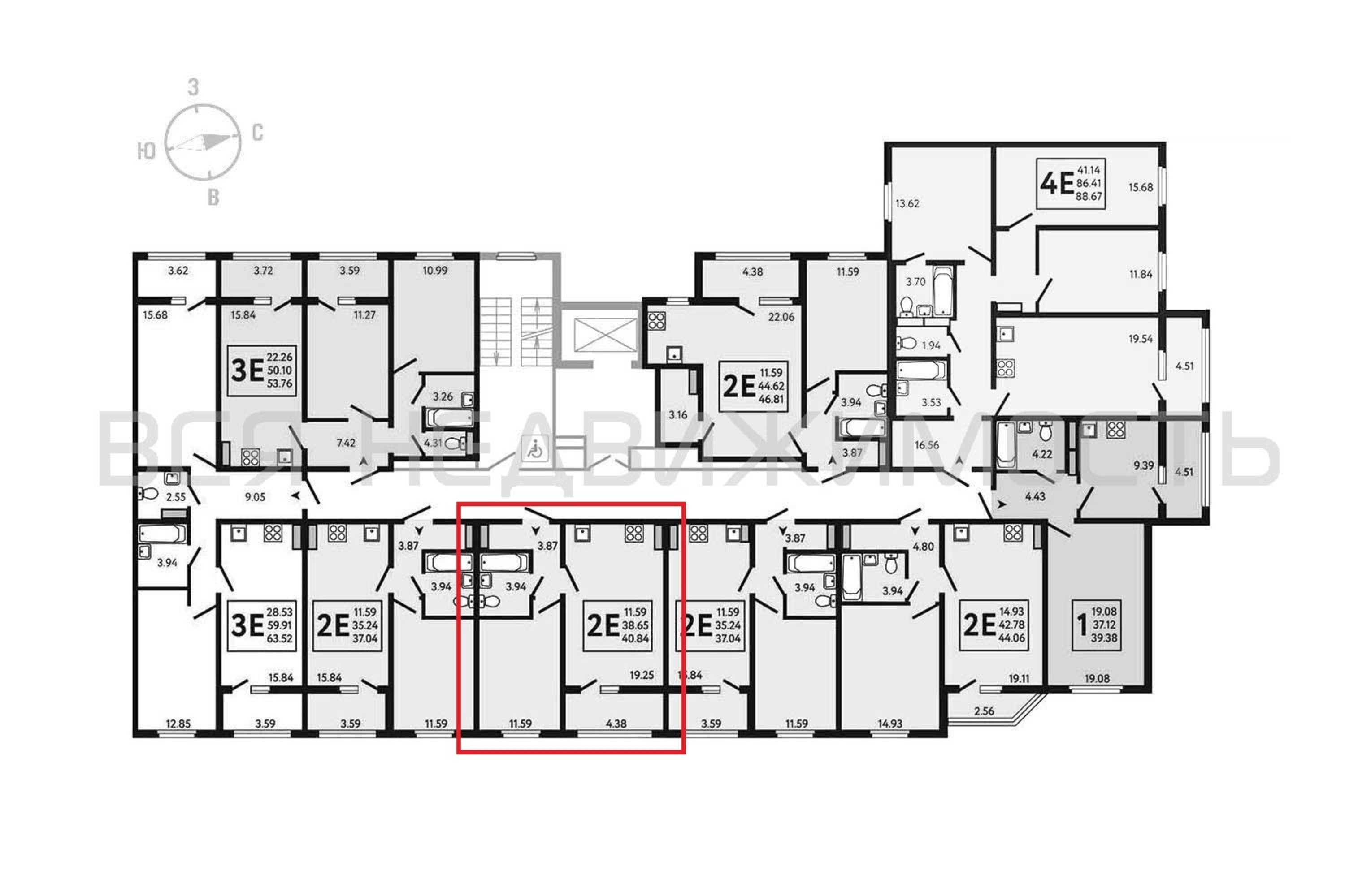 1-комнатная квартира, 40.84 м² 6/14 этаж ID объекта 100093135