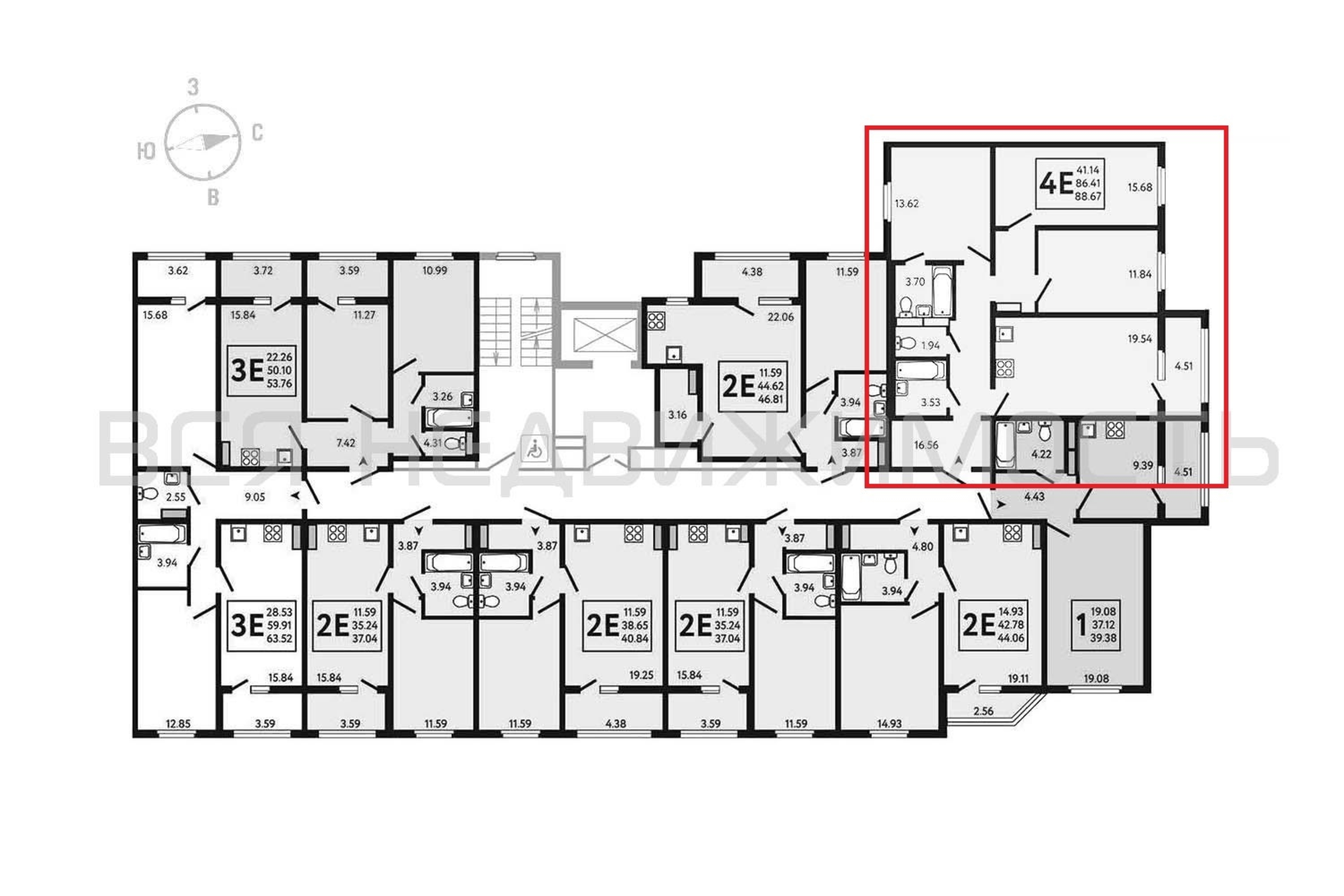 3-комнатная квартира, 88.67 м² 9/14 этаж ID объекта 100093140
