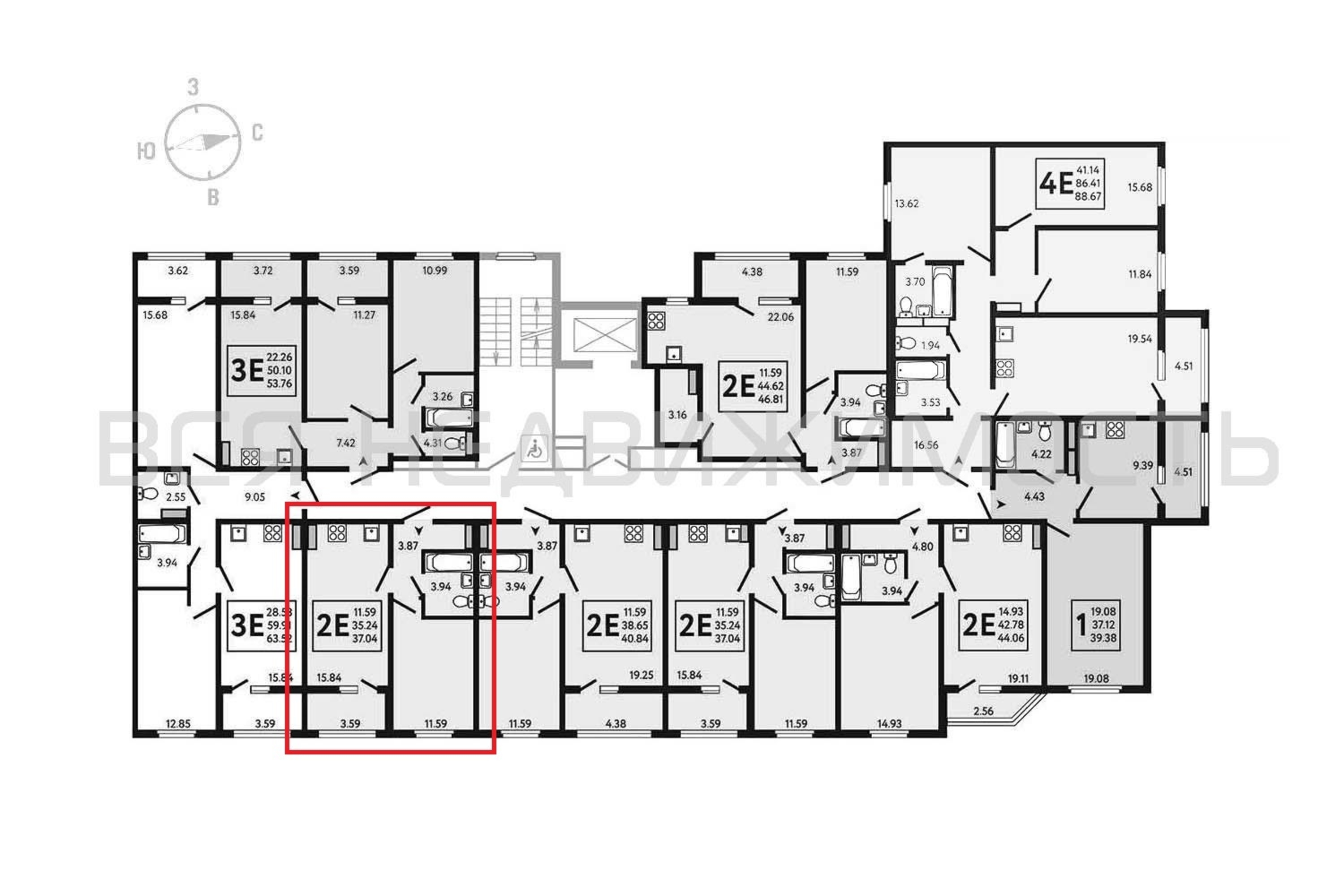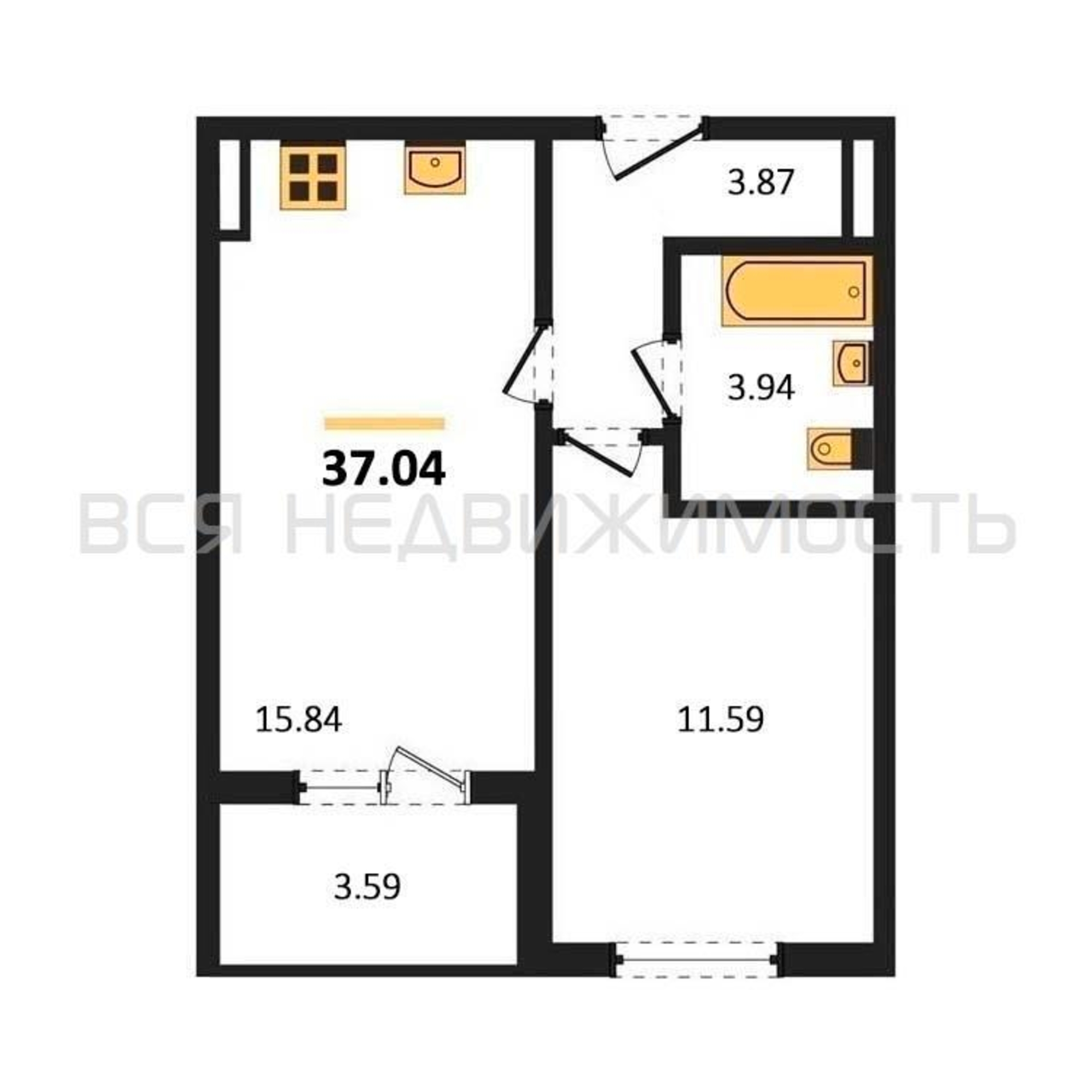 1-комнатная квартира, 37.04 м² 9/14 этаж ID объекта 100093145