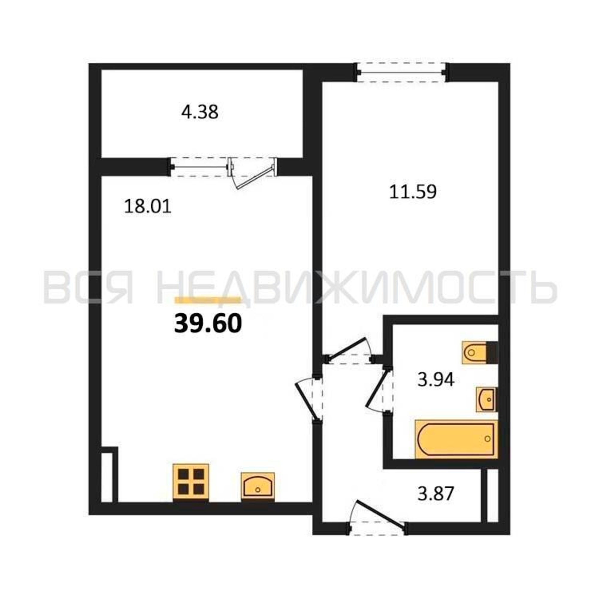 Строительная площадь39.60 м²
