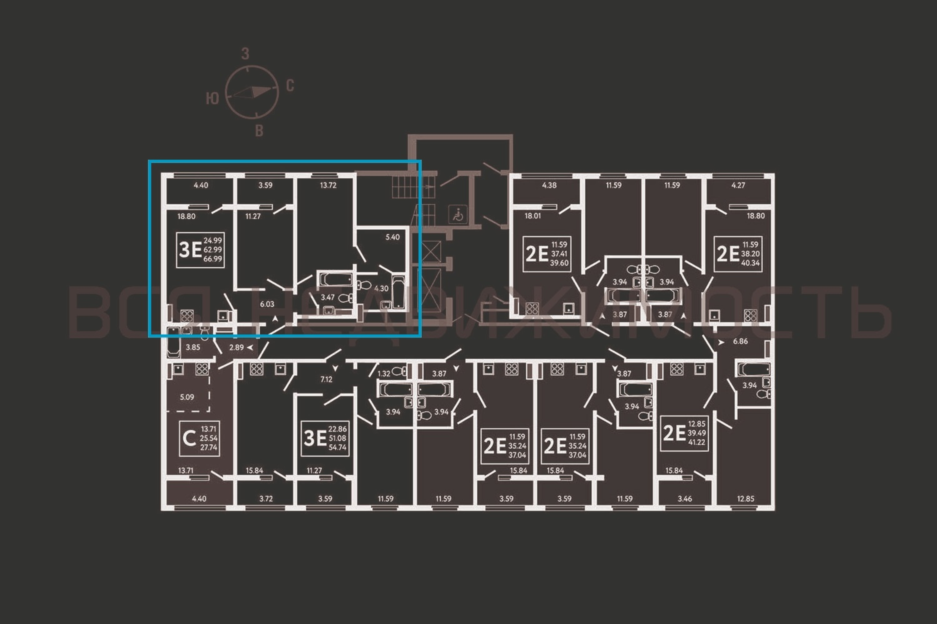 Общая площадь62.99 м²